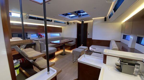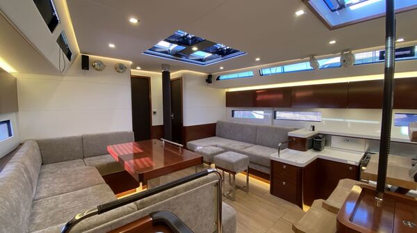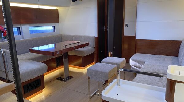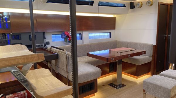 - Großzügiger, geräumiger Salon mit U-förmiger Sitzgruppe an Backbord