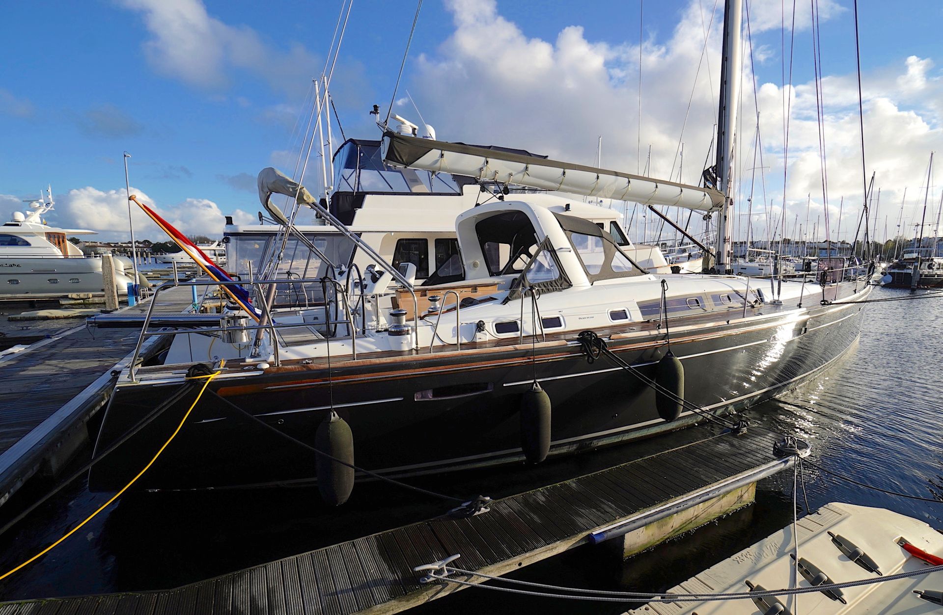 Segelyacht aus dem Jahr 2011Moderner und ausgesprochen umfangreich ausgestatteter Cruiser von der französischen Großwerft Chantiers BÉNÉTEAU. Die Oceanis 58 bietet in ihrer luxuriösen Eignerkabine, zwei geräumigen Achterkabinen und dem riesigen Salon ungewöhnlich viel Lebensraum und Komfort für lange Reisen und ausgedehnte Aufenthalte an Bord. Reichlich Luft und Licht unter Deck dank zahlreicher Rumpffenster, Bullaugen, Decksluken, Panorama-Fenster im Salondach und der großen Aufbauscheiben. Auch an Deck zeigt sich die Oceanis modern und aufgeräumt. Das breite Cockpit ist aufgeteilt in einen gänzlich Leinen-freien Gästebereich vorne mit komfortablen Duchten und einem großen Cockpittisch und einen Segelbereich mit den beiden Steuerständen achtern, von denen aus die Yacht praktisch einhand zu bedienen ist. Weitläufiges Achterdeck mit Stauplatz für den Tender.