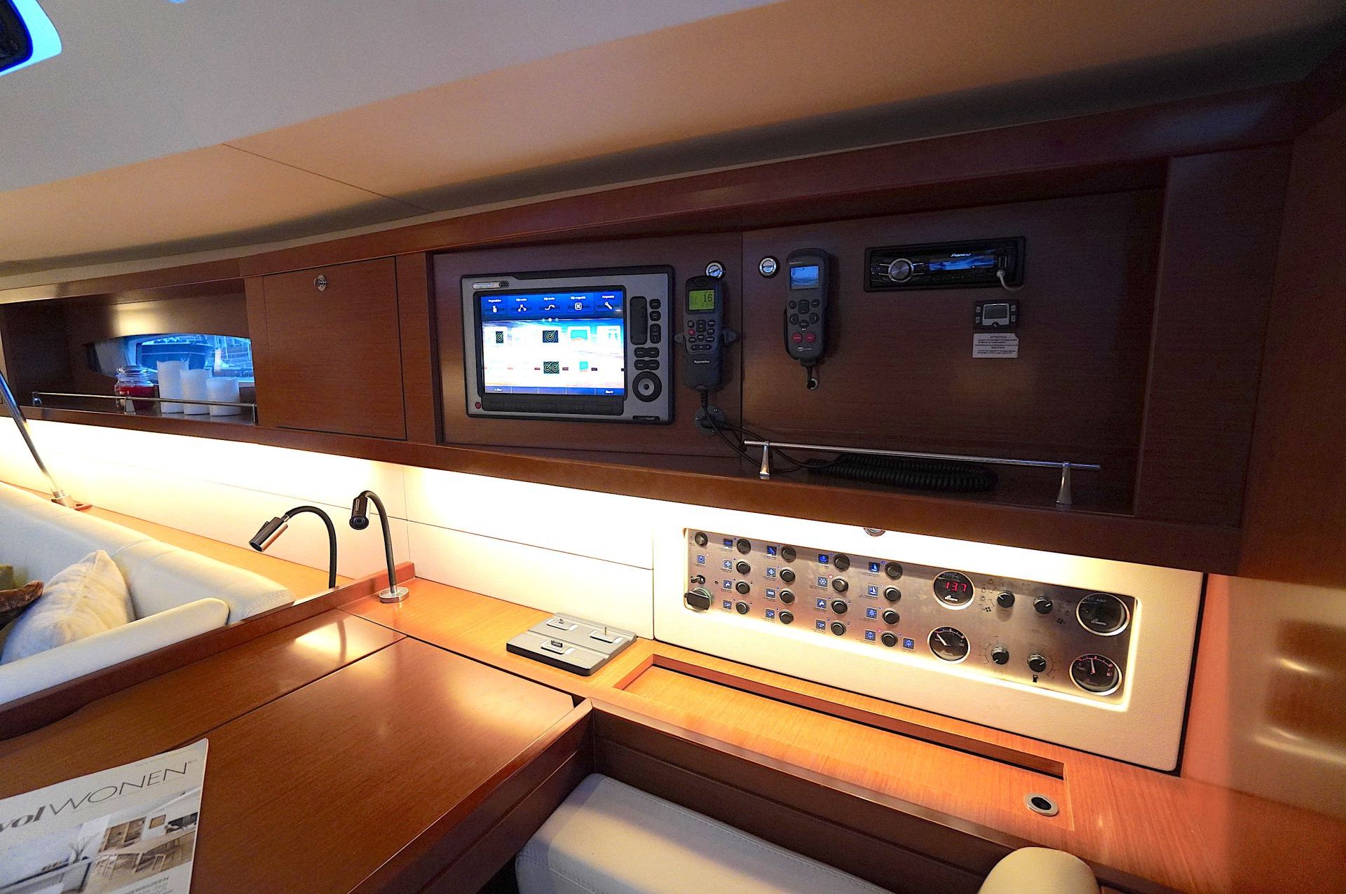 - Kartentisch in Fahrtrichtung eingebaut an Steuerbord achtern
