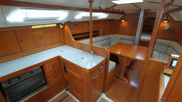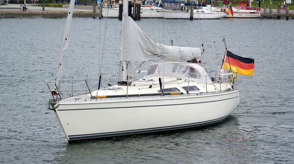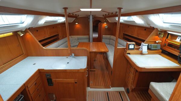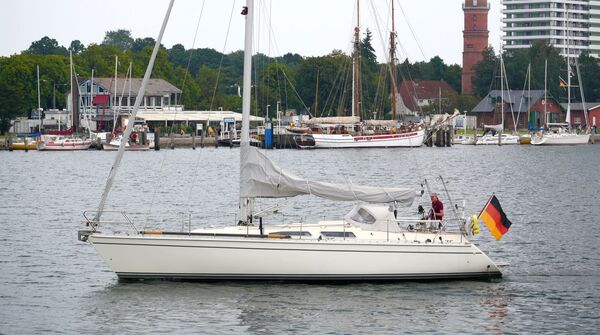Segelyacht aus dem Jahr 1988Solider, eleganter und schneller Cruiser von der Qualitätswerft Comfortbåtar Marine AB aus dem südschwedischen Arvika. Von der Comfortina 38 wurden in zwölf Jahren über 150 Einheiten gebaut, was sie zu einem großen Erfolg für die Werft machte. Hervorragende Segeleigenschaften dank ihres schlanken Rumpfes und des leistungsfähigen, hohen Riggs. Trotz ihrer geringen Breite von nur 3,50 m bietet die Comfortina 38 reichlich Platz und Komfort und erstaunlich viel Stauraum- sowohl an als auch unter Deck. Schöner, aufwendig ausgeführter Ausbau in Teak mit reichlich Massivholz und liebevoll gestalteten Details. 2 Kabinen-Layout mit Eignerkabine im Vorschiff, L-förmiger Pantry, geräumiger Nasszelle und großer Backskiste an Steuerbord achtern.