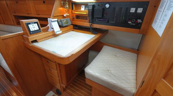 - In Fahrtrichtung eingebauter Kartentisch an Steuerbord achtern