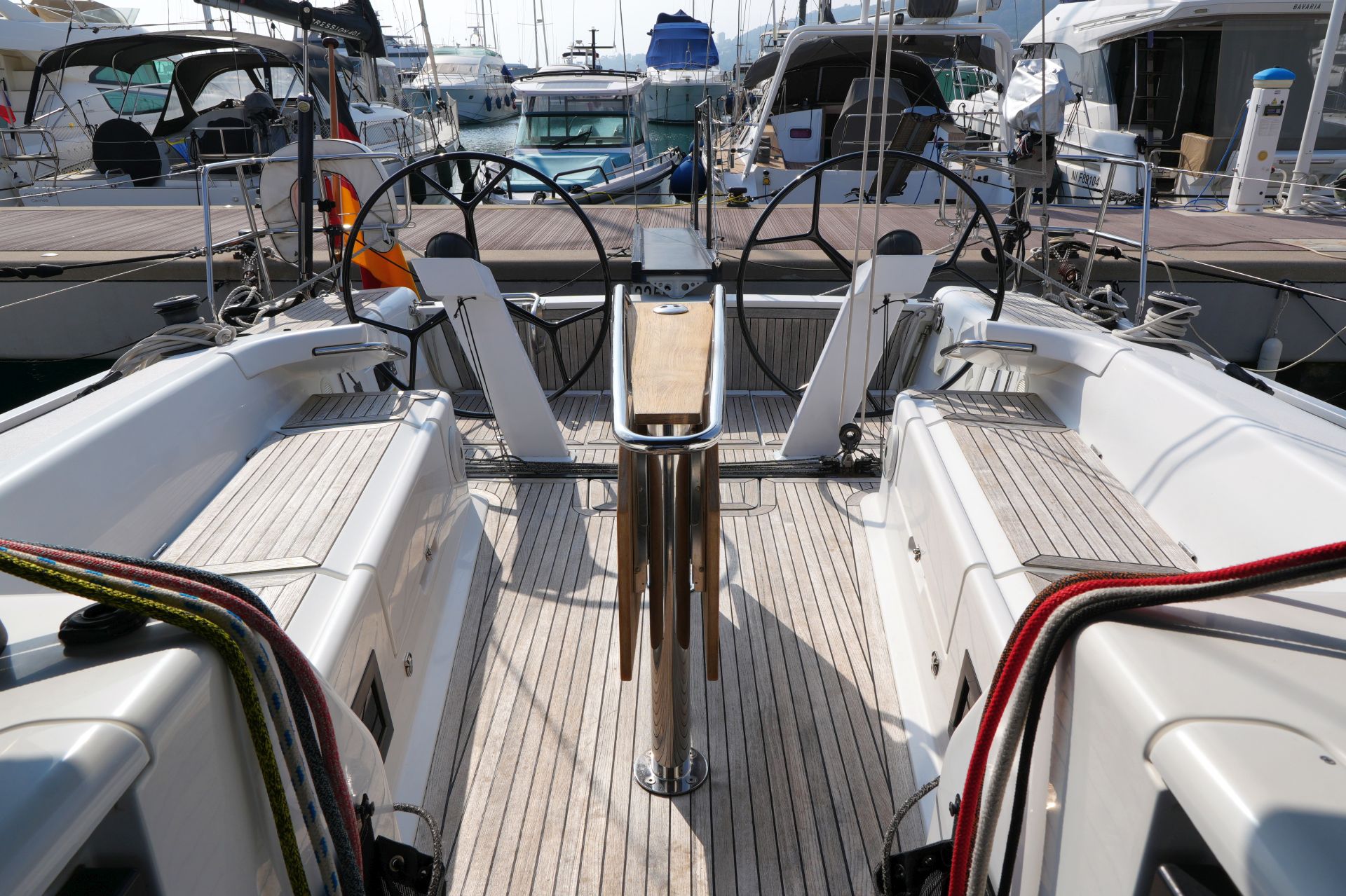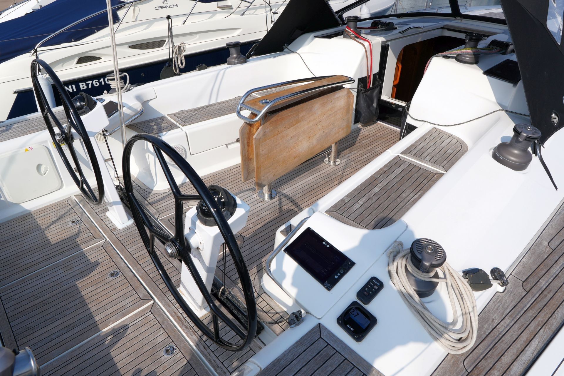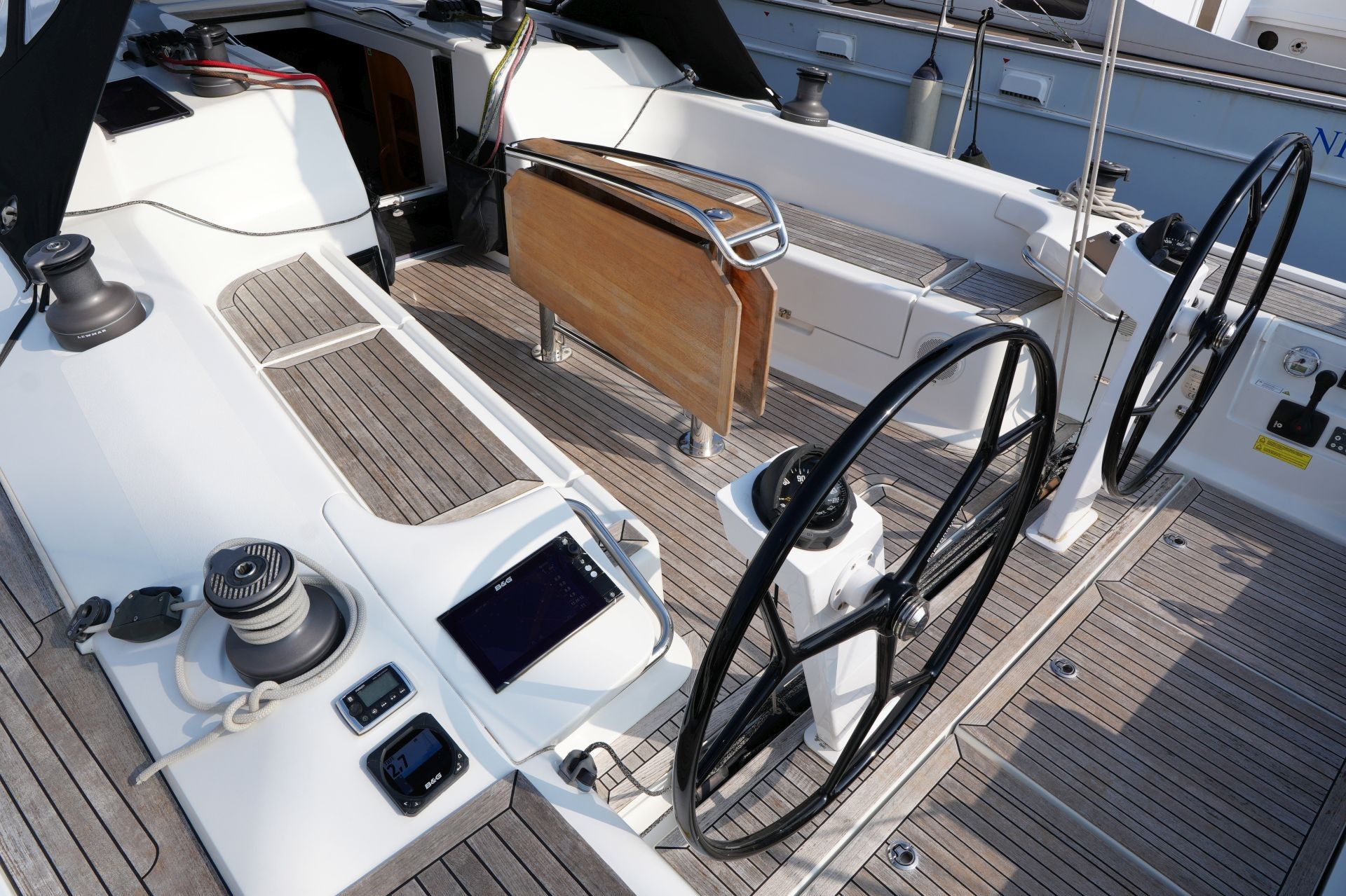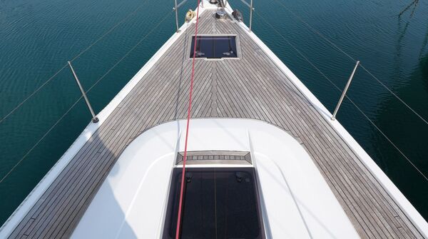 - Teakdeck auf Laufdecks, Aufbaudach, Badeplattform und im Cockpit