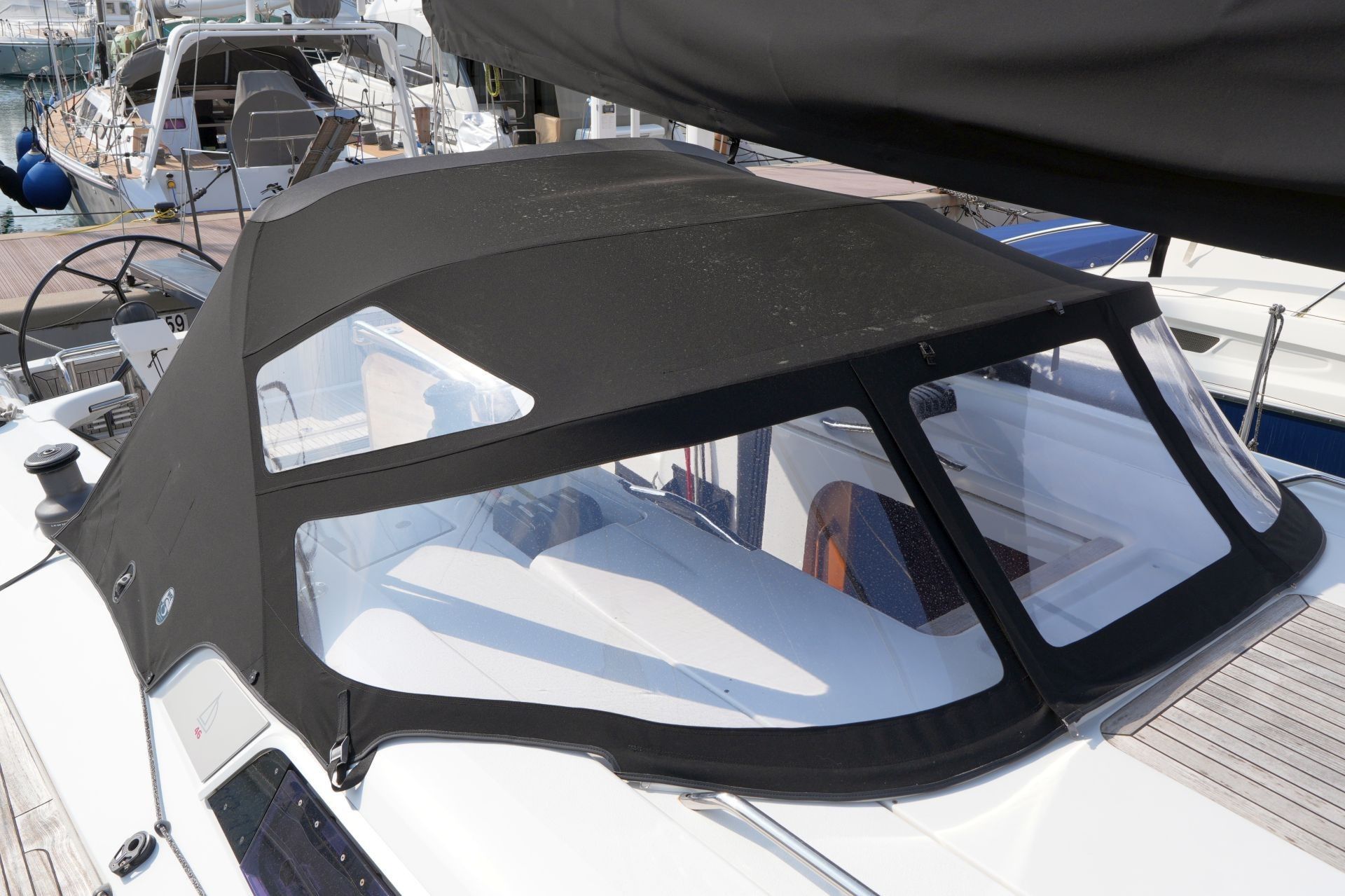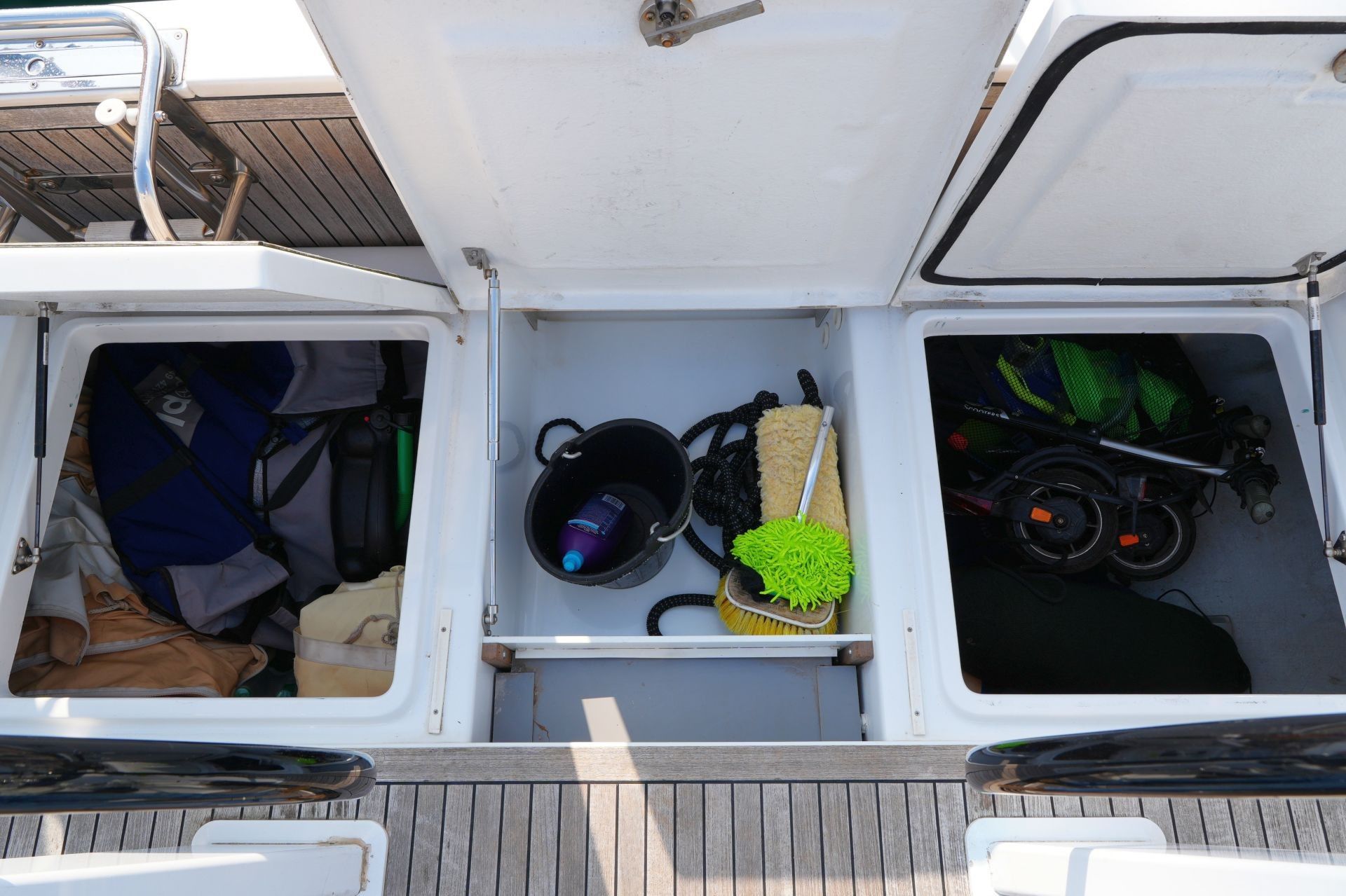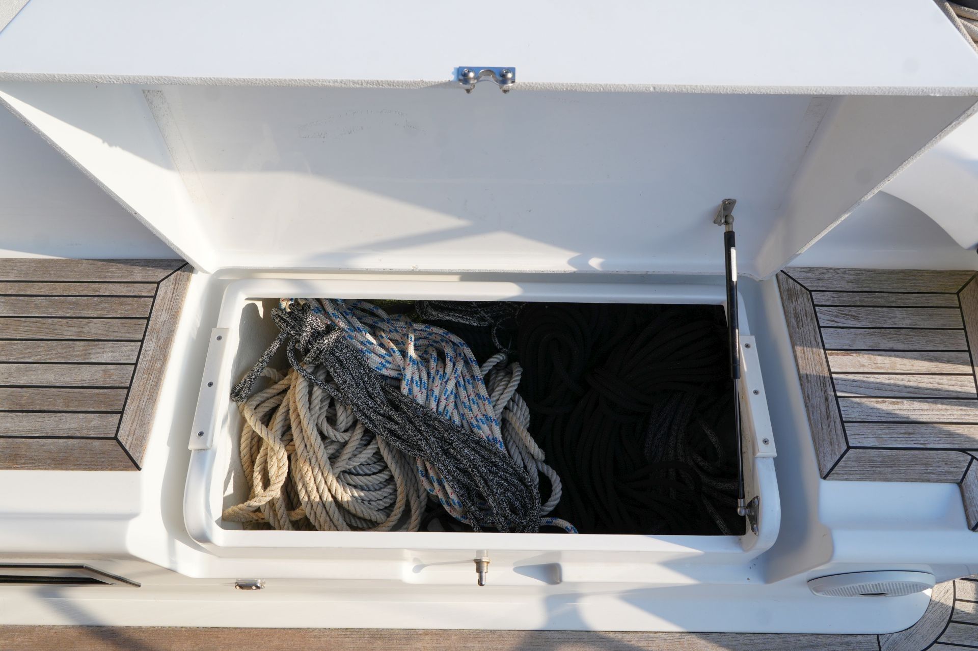- Teakdeck auf Laufdecks, Aufbaudach, Badeplattform und im Cockpit