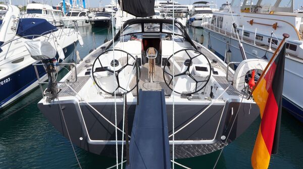 Performance-Cruiser aus dem Jahr 2015Schneller und vielseitiger Performance-Cruiser von der deutschen Traditionsmarke Dehler. Das renommierte, im Regatta-Zirkus erfolgreiche Konstruktionsbüro judel/vrolijk & co. verlieh der Dehler 46 einen modernen Rumpf, effiziente Anhänge und einen leistungsfähigen Segelplan. Über den Werftstandard hinaus ließ sich die Yacht noch durch eine Vielzahl von Optionen passend zum Programm und sportlichen Anspruch ihres Eigner konfigurieren. Stabile, leichte und verwindungssteife Bauweise im Vakuum-Infusionsverfahren mit einem Kohlefaser-Strongback ("Dehler Carbon Cage") zur Aufnahme der Kräfte von Kiel und Rigg. Als Flaggschiff war die Dehler 46 Technologie- und Design-Träger der Modellpalette, was sich nicht zuletzt in einer eleganten, rasanten Formensprache niederschlug: Die geraden Rumpflinien, das aggressive, nach vorn zulaufende Fensterband im Aufbau und ein senkrechter Steven sowie Spiegel verleihen der Yacht eine spektakuläre Optik. Das funktionelle, aufgeräumte Deckslayout ermöglicht sowohl das Arbeiten einer vielköpfigen Crew im Regatta-Einsatz als auch das sichere, entspannte Fahrtensegeln zu zweit.