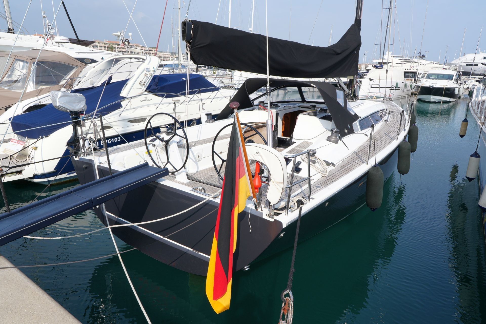 Hier steht eine Dehler 46 in der Competition-Version aus erster Hand zum Verkauf. Die ohnehin sportliche Yacht wurde durch ein Pauger Kohlefaserrigg mit stehendem Gut in Rod (ca. einen Meter höher als der Standard Aluminiummast), einen T-förmigen Racing-Kiel mit Eisenfinne und Bleibombe (Tiefgang: ca. 2,50 m, Ballast ca. 3.150 kg), ein verlängertes Ruderblatt mit Competition-Profil sowie eine exklusive Segelgarderobe von ELVSTRÖM weiter aufgebohrt. Umfangreiche Spezifikation inkl. ausfahrbarem Sidepower Bugstrahlruder (neu 2021), zwei Lithium-Servicebatterien (neu 2021), Inverter 2 KW (neu 2021), elektrischer Fallwinsch, ausklappbarer Badeplattform, Teakdeck auf Laufdecks, Aufbaudach und im Cockpit, Edelstahl Ankergeschirr usw. Der Rumpf der Dehler 46 Competition wurde 2021 in Anthrazit Metallic foliert. Die Yacht liegt in Südfrankreich, wird regelmäßig technisch gewartet und gepflegt und kann nach Absprache besichtigt werden.