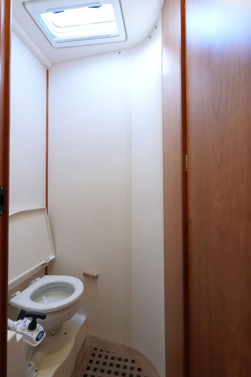 - Eignerbad mit Waschtisch, Marine-WC und separater Duschkabine