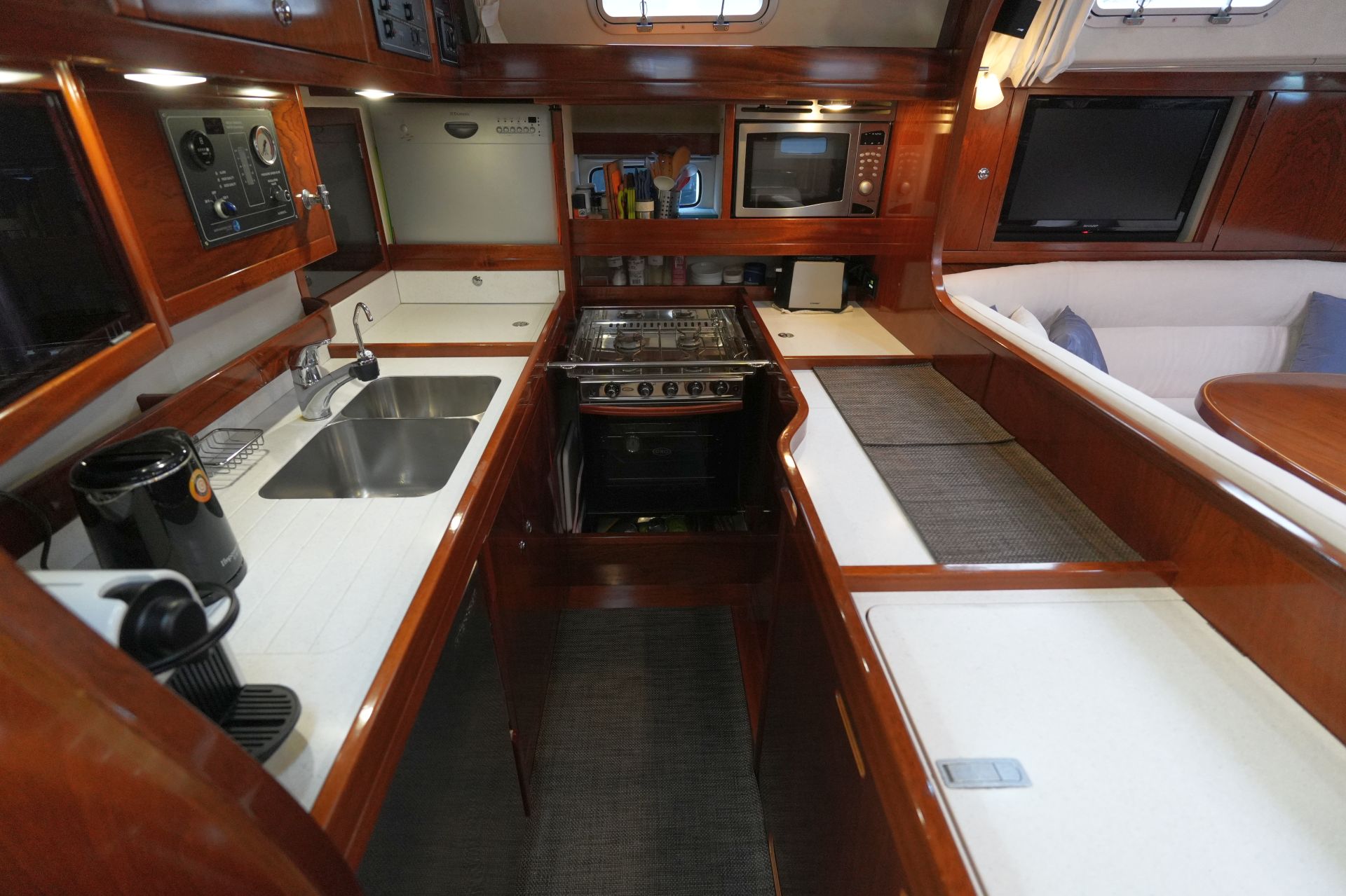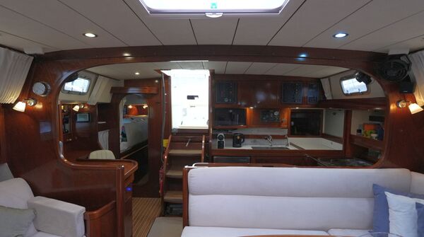 Blauwasser-Cruiser aus dem Jahr 2010Luxuriöser, seegängiger und für Langfahrt ausgestatteter Blauwasser-Cruiser aus Frankreich. Ihr ausgereiftes Konzept, der hohe Standard des Bootsbaus der Werft und die Fokussierung auf Sicherheit, Zuverlässigkeit und Komfort machen AMEL-Segelyachten seit Jahrzehnten zu erstklassigen Fahrtenyachten für lange Strecken und man trifft sie auf den entlegensten Revieren der Welt. Solide, verwindungssteife Bauweise mit anlaminierten (teilweise wasserdichten) Schotten und laminierter Rumpf/Deck-Verbindung. Geschütztes, tiefes Centercockpit mit fester Windschutzscheibe und Sprayhood. Geräumige Eignerkabine im Heck über die gesamte Schiffsbreite und gut zugänglicher, wartungsfreundlicher Motorraum. In zwei Doppelkojen, zwei Stockbetten und der Skipper-Koje an Steuerbord im Durchgang zur Achterkabine hat die AMEL 54 ganze sieben Schlafplätze und der seegerechte Ausbau bietet guten Halt bei rauen Bedingungen.