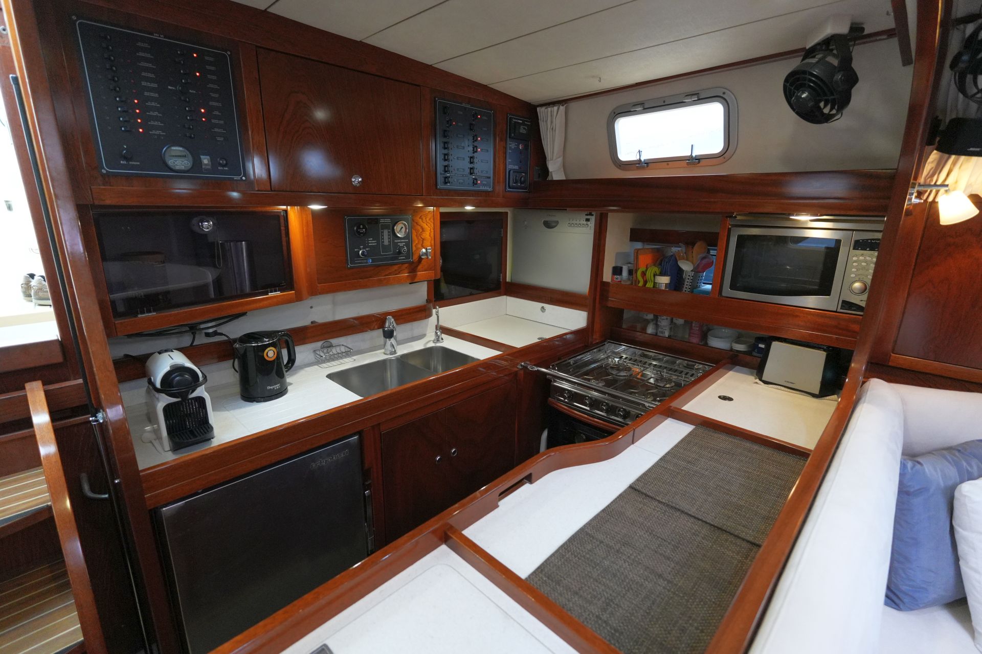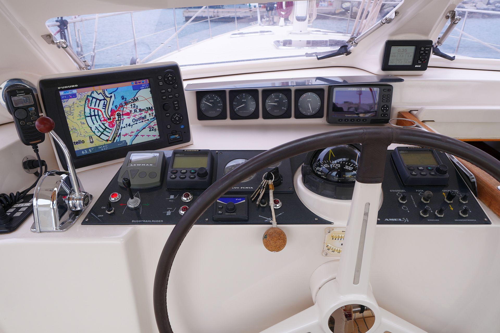Hier steht die AMEL 54 Baunummer #149 aus dem Jahr 2010 zum Verkauf. Gepflegte und laufend technisch gewartete Eigneryacht aus erster Hand. Umfangreiche Spezifikation inkl. Dieselgenerator, Watermaker, hydraulischer Gangway, elektrischer SIMPSON Davits inkl. Dinghy, Dieselheizung, zwei Ankerwinden mit doppeltem Ankergeschirr usw. Elektrische Rollanlagen für Genua, Kutterfock und Großsegel sowie elektrische Winschen für Groß- und Genuaschoten ermöglichen ein einfaches, sicheres Handling der Yacht durch eine kleine Crew vom geschützten Cockpit aus. Sehr komplette Navigations- und Kommunikationsausrüstung inkl. zwei unabhängigen Autopiloten, Radar, zwei Plottern, UKW- sowie Kurzwellenfunkgerät, Wärmebildkamera usw. Die AMEL 54 liegt in Norditalien an der Ligurischen Küste und kann dort nach Absprache besichtigt werden.
