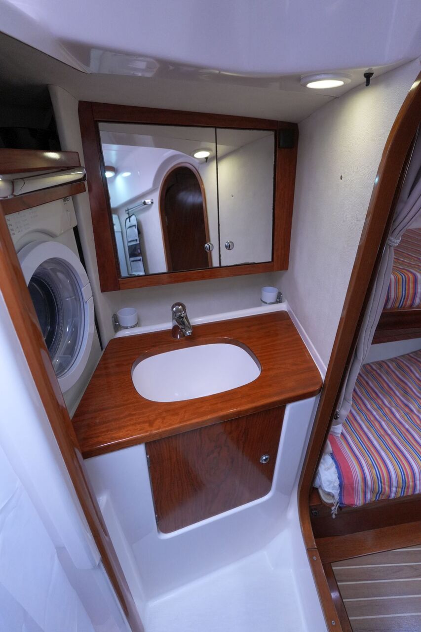 - Zweite Nasszelle in Vorpiek mit Waschtisch, elektrischer Toilette und separater Duschkabine