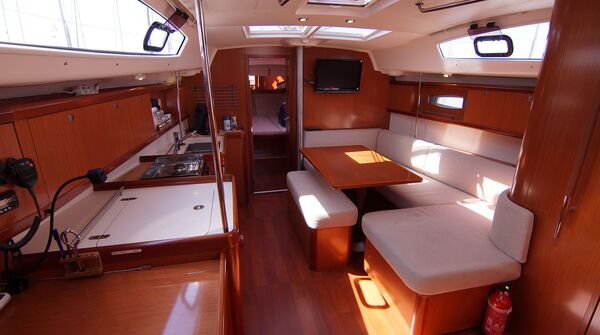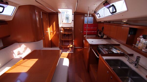 Segelyacht aus dem Jahr 2008Komfortabler Cruiser in 3 Kabinen-Layout von der bekannten französischen Großwerft BÉNÉTEAU (Design: Berret/Racoupeau). Insbesondere im Salon bietet die Oceanis 40 reichlich Lebensraum und die großen Aufbaufenster, die Panorama-Frontscheibe, zahlreiche Luken und die Rumpffenster viel Licht und Luft ins Interieur. Geräumiges Cockpit mit zwei Steuerständen, großem Cockpittisch und freiem Durchgang nach achtern zur Badeplattform.