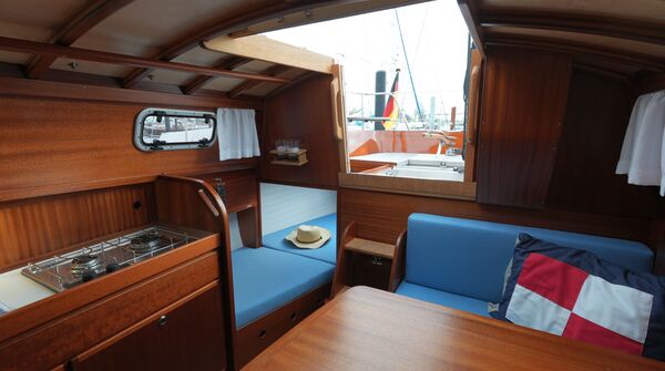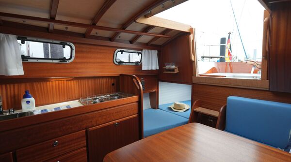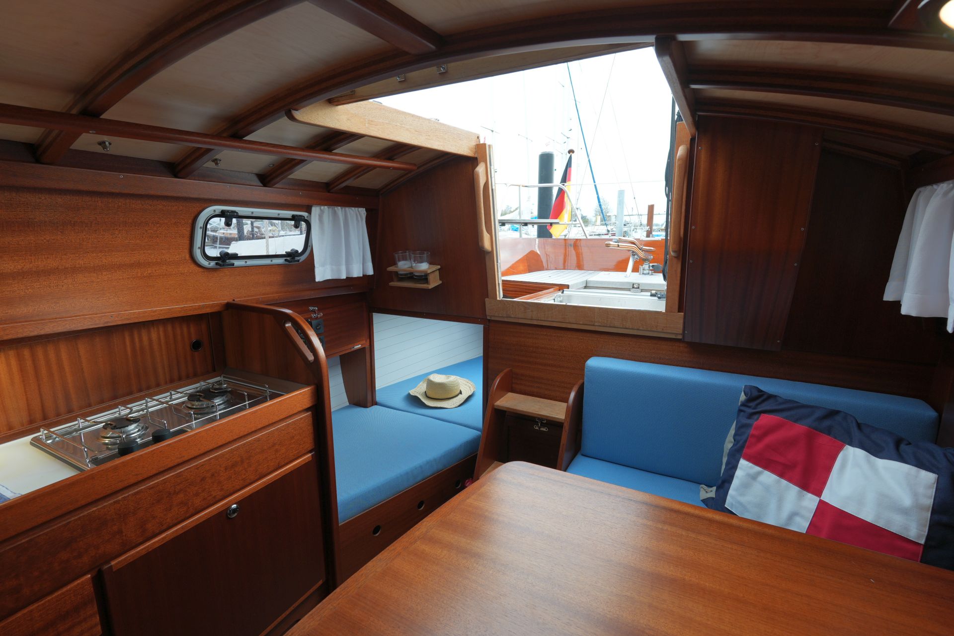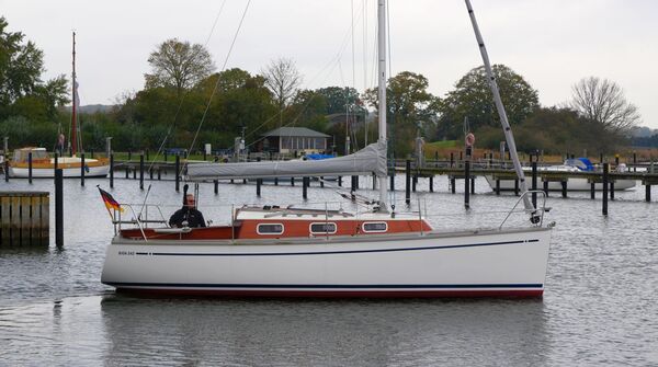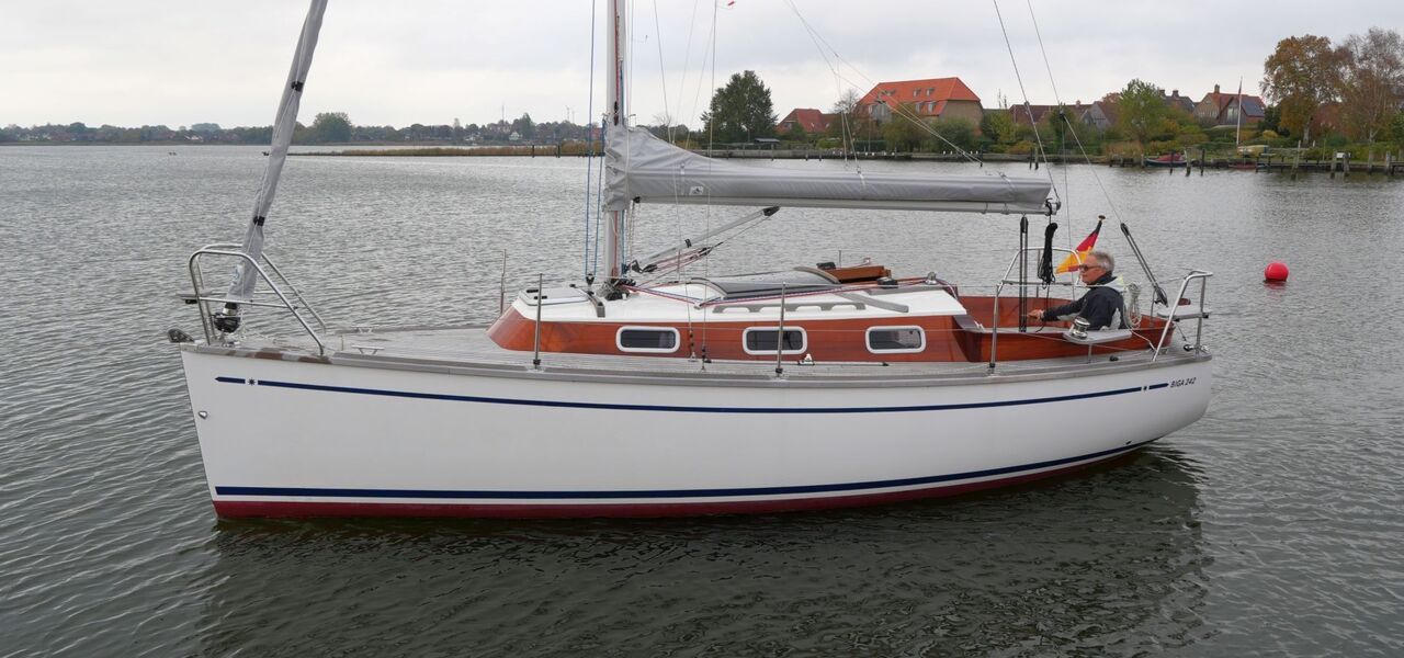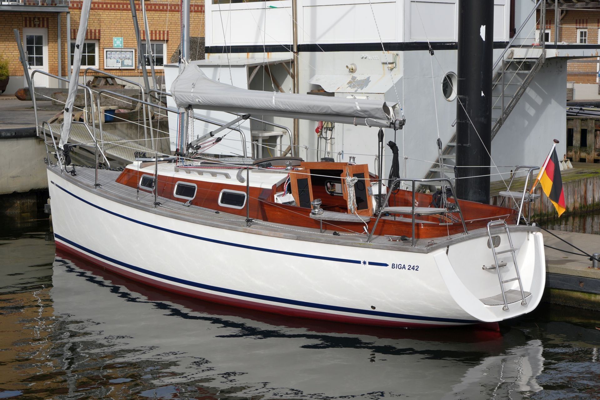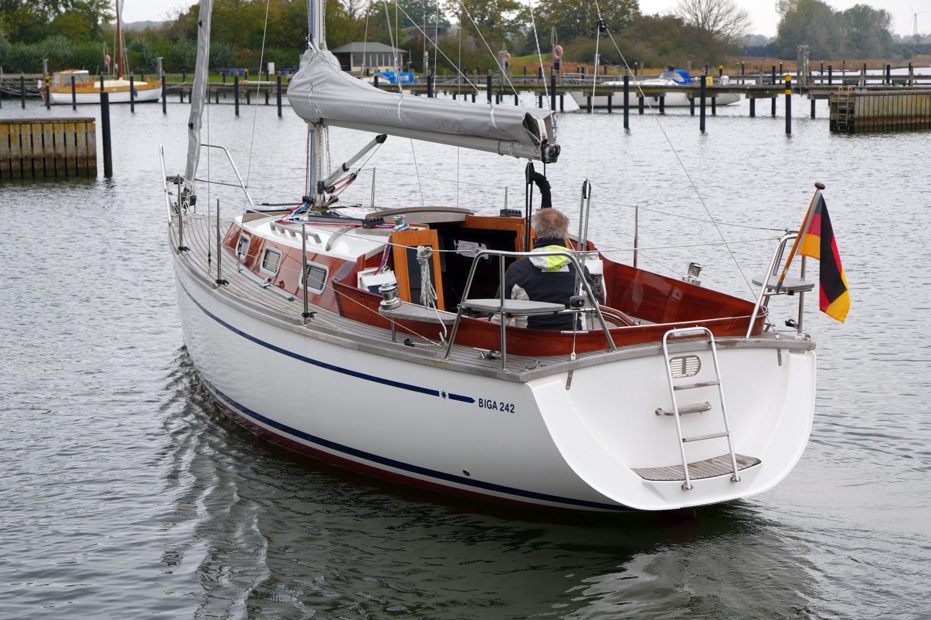 Hübscher Pocket-Cruiser in handlicher Größe von der Bootswerft Gerhard Bicker. Die Biga 242 ist das kleinste Modell der Qualitätswerft in Nordrhein-Westfalen. Moderner Riß von Juliane Hempel mit geraden Linien und kantigem Mahagoni-Aufbau. Trotz ihrer traditionellen Anmutung hat die Biga 242 aber gute Segeleigenschaften und ein angenehmes Seeverhalten dank modernem Unterwasserschiff und leistungsfähigem Rigg. Geräumiges Cockpit mit hohem Süllrand und reichlich Deckstauraum in den großen Backskisten. Wunderschönes und liebevoll ausgeführtes Interieur. Obwohl die Biga 242 in Mahagoni ausgebaut ist, wirken Salon und Kabine durch die weiß lackierten Eschen-Wegerungen, die Salondecke in Birke sowie hellblaue Polster nicht dunkel. Unter Deck bietet die Yacht durch ihr cleveres Layout erstaunlich viel Platz, Komfort und Stauraum für ein Boot dieser Größenklasse. Das deutsche Wassersport-Magazin YACHT urteilte seinerzeit: "Eine wie Keine ... keine Frage, das jüngste und aktuell zugleich kleinste Modell der westfälischen Bicker-Werft sucht seinesgleichen. Der Markt gibt kaum Vergleichbares her - zumindest nicht serienmäßig.“