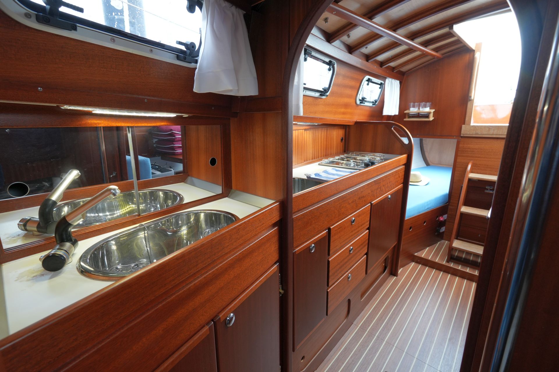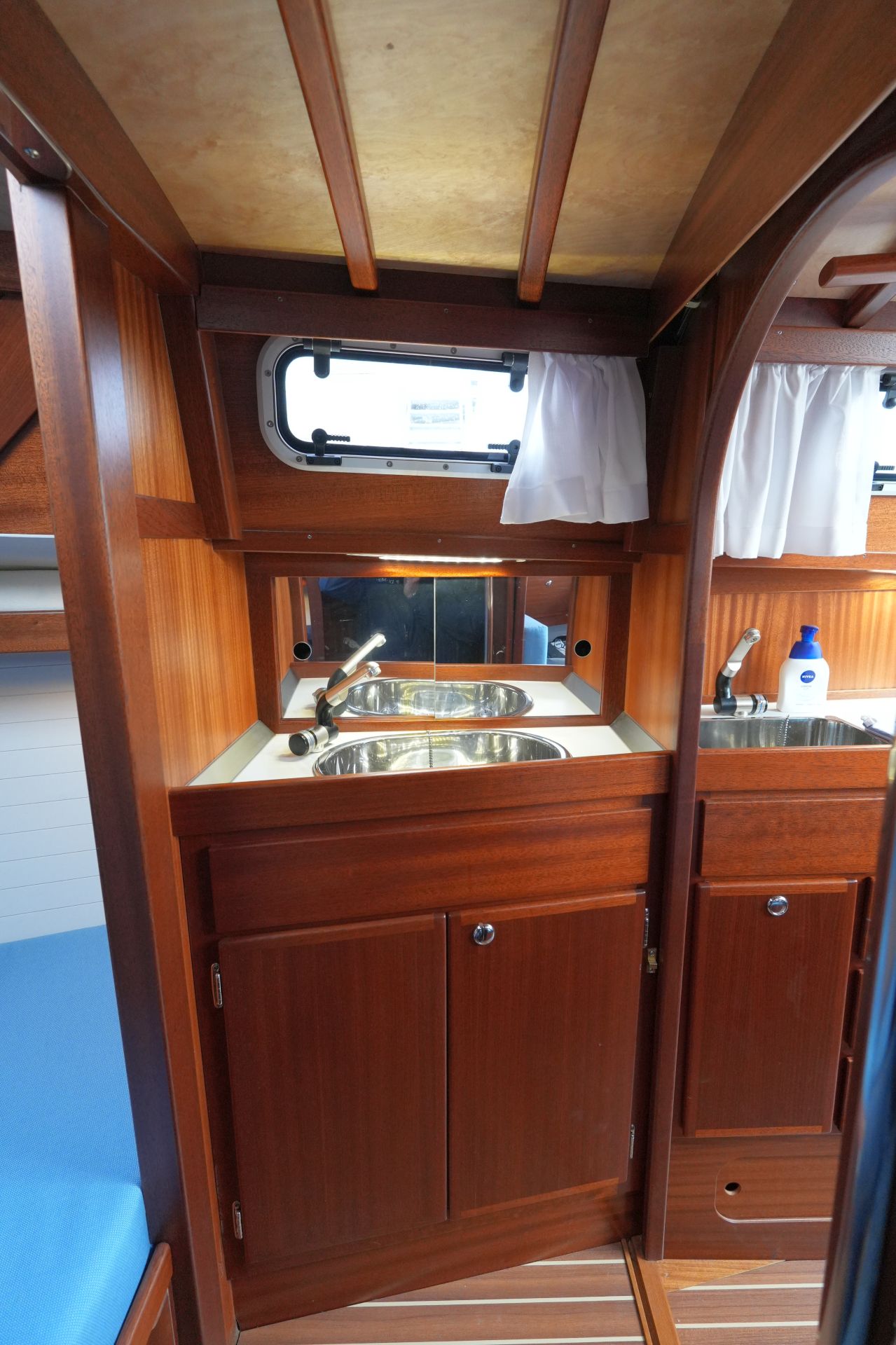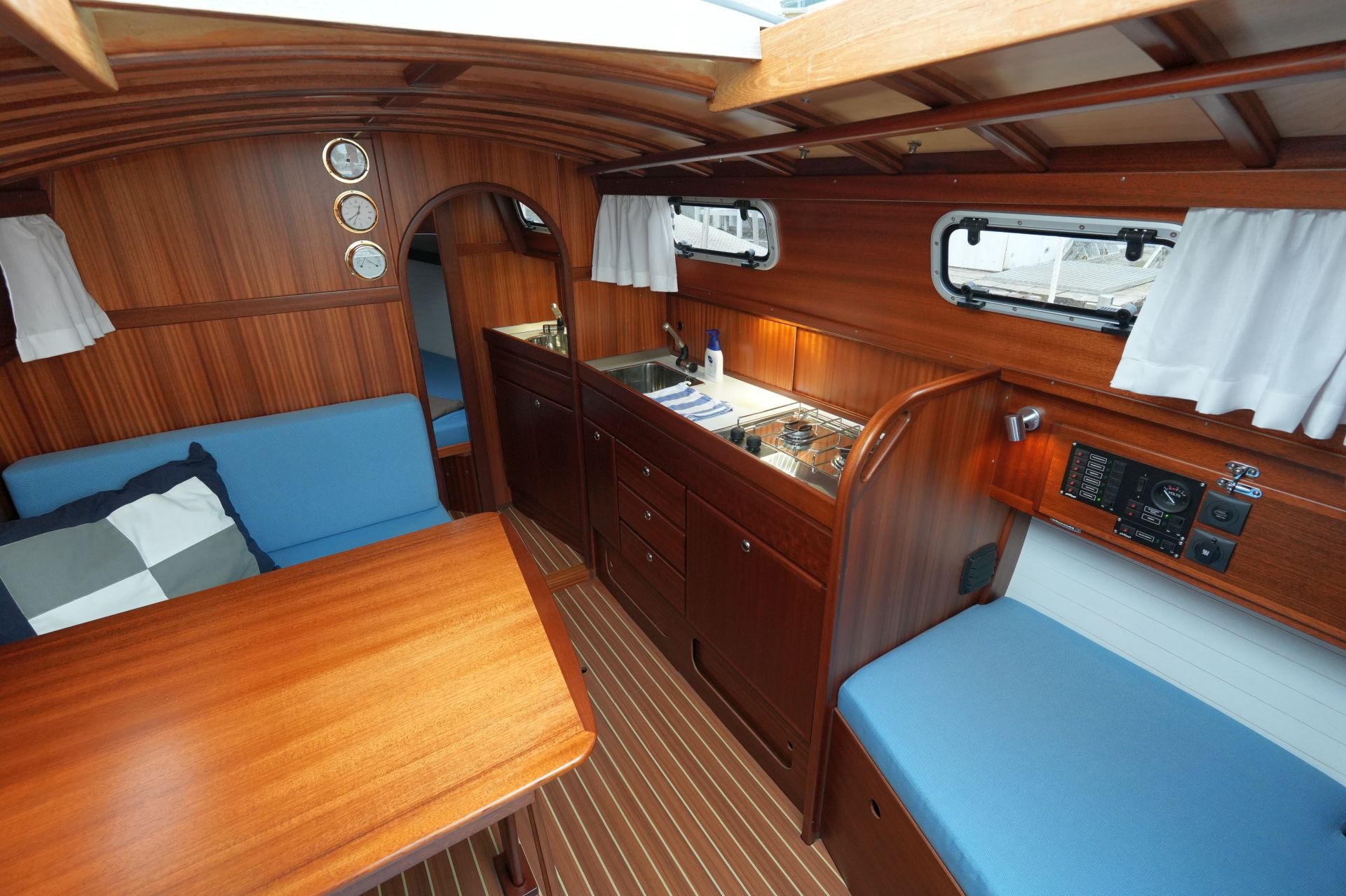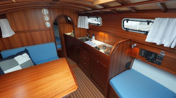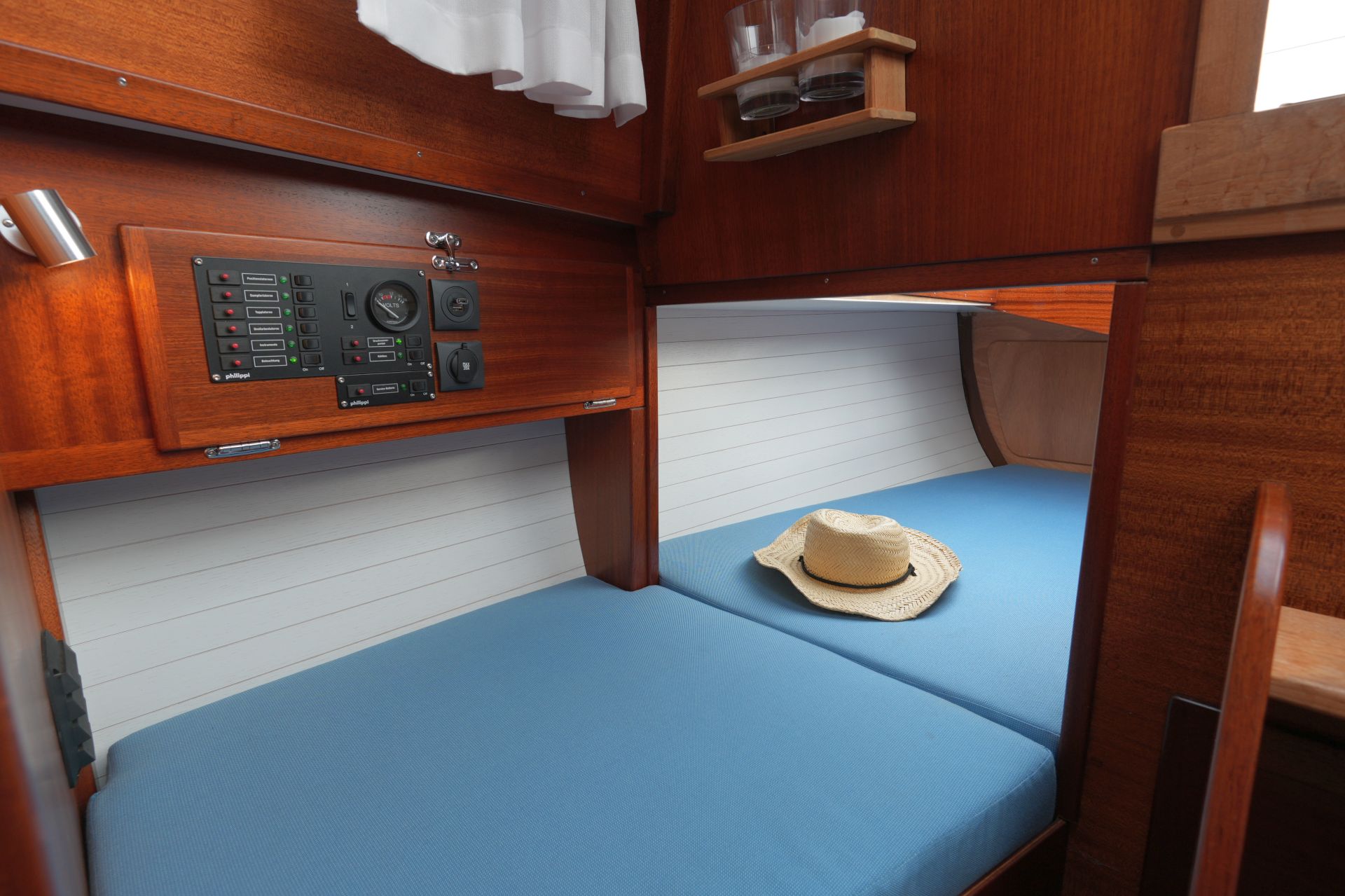 Hübscher Pocket-Cruiser in handlicher Größe von der Bootswerft Gerhard Bicker. Die Biga 242 ist das kleinste Modell der Qualitätswerft in Nordrhein-Westfalen. Moderner Riß von Juliane Hempel mit geraden Linien und kantigem Mahagoni-Aufbau. Trotz ihrer traditionellen Anmutung hat die Biga 242 aber gute Segeleigenschaften und ein angenehmes Seeverhalten dank modernem Unterwasserschiff und leistungsfähigem Rigg. Geräumiges Cockpit mit hohem Süllrand und reichlich Deckstauraum in den großen Backskisten. Wunderschönes und liebevoll ausgeführtes Interieur. Obwohl die Biga 242 in Mahagoni ausgebaut ist, wirken Salon und Kabine durch die weiß lackierten Eschen-Wegerungen, die Salondecke in Birke sowie hellblaue Polster nicht dunkel. Unter Deck bietet die Yacht durch ihr cleveres Layout erstaunlich viel Platz, Komfort und Stauraum für ein Boot dieser Größenklasse. Das deutsche Wassersport-Magazin YACHT urteilte seinerzeit: "Eine wie Keine ... keine Frage, das jüngste und aktuell zugleich kleinste Modell der westfälischen Bicker-Werft sucht seinesgleichen. Der Markt gibt kaum Vergleichbares her - zumindest nicht serienmäßig.“