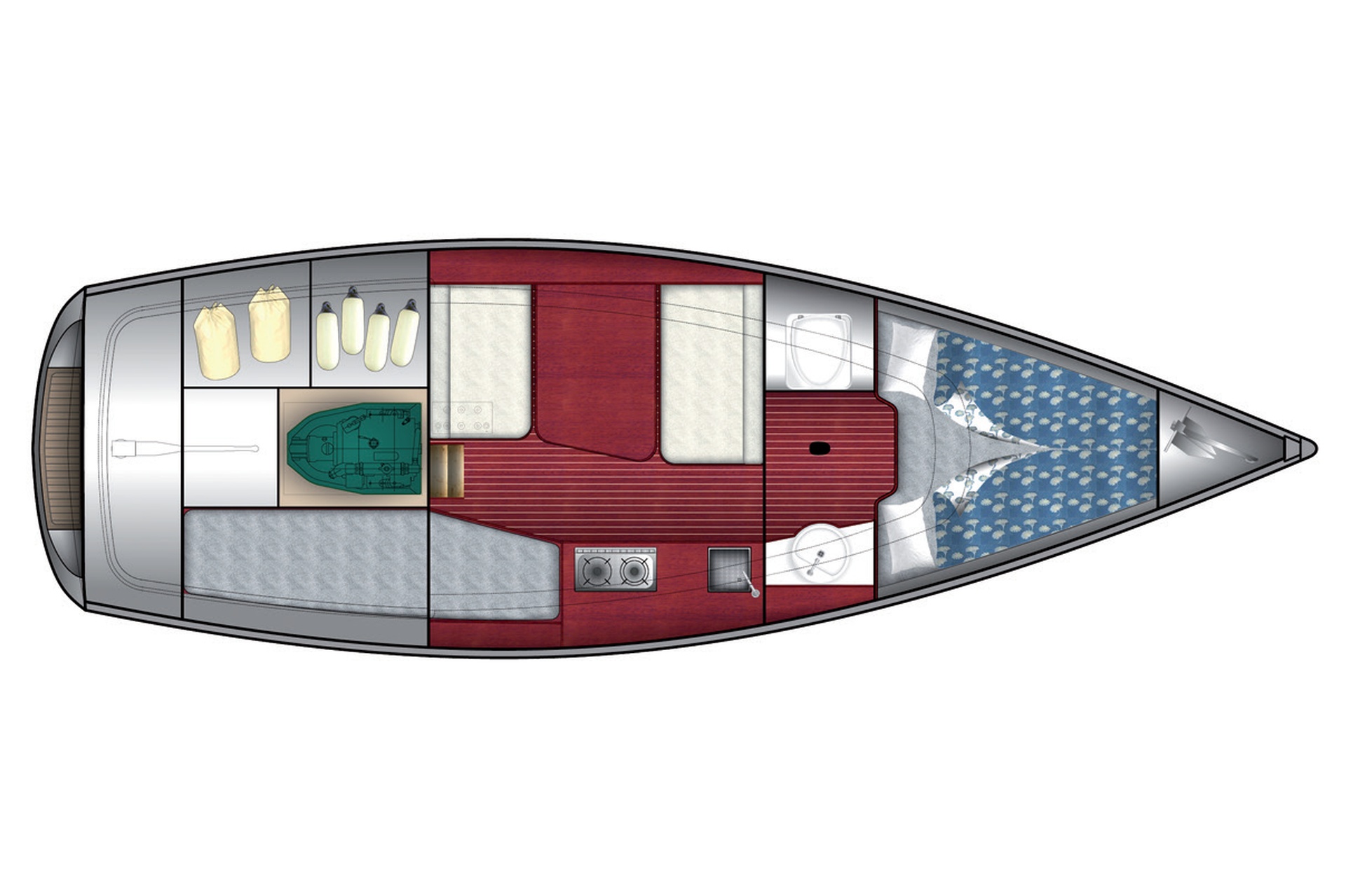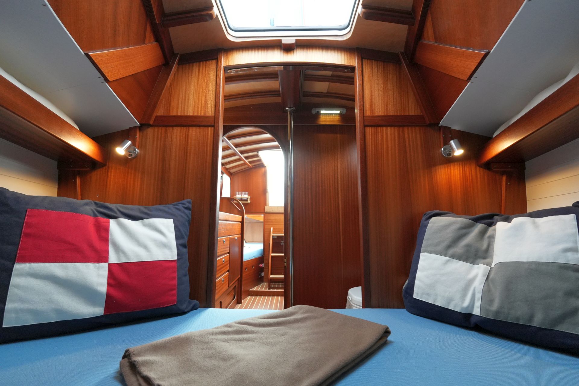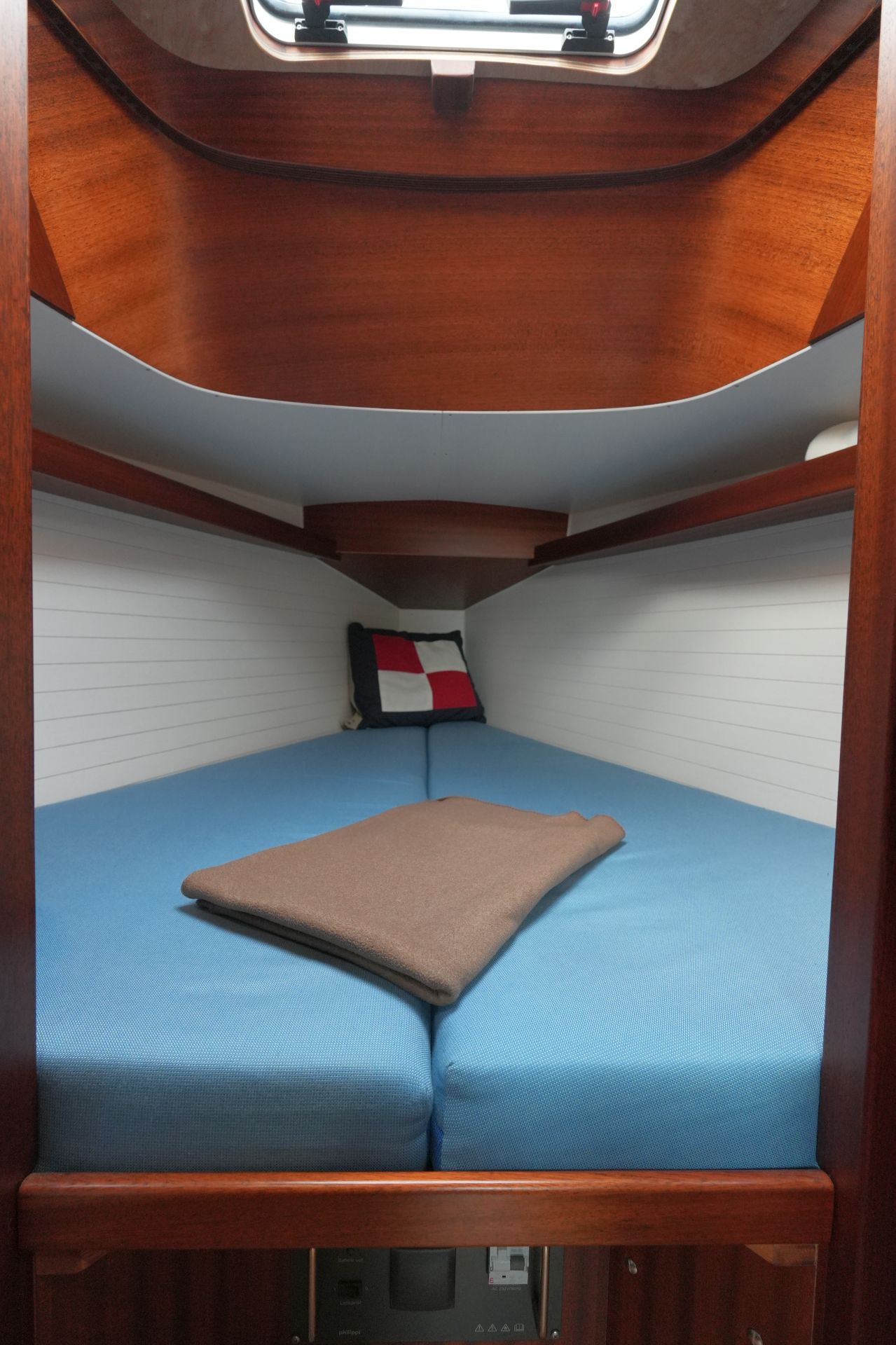 • Vorschiffskabine mit V-förmiger Doppelkoje und Decksluke