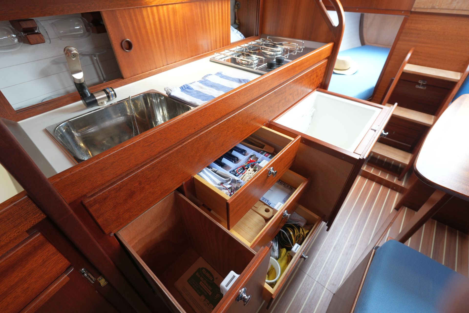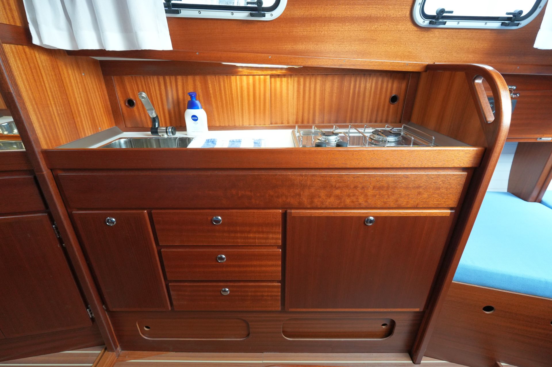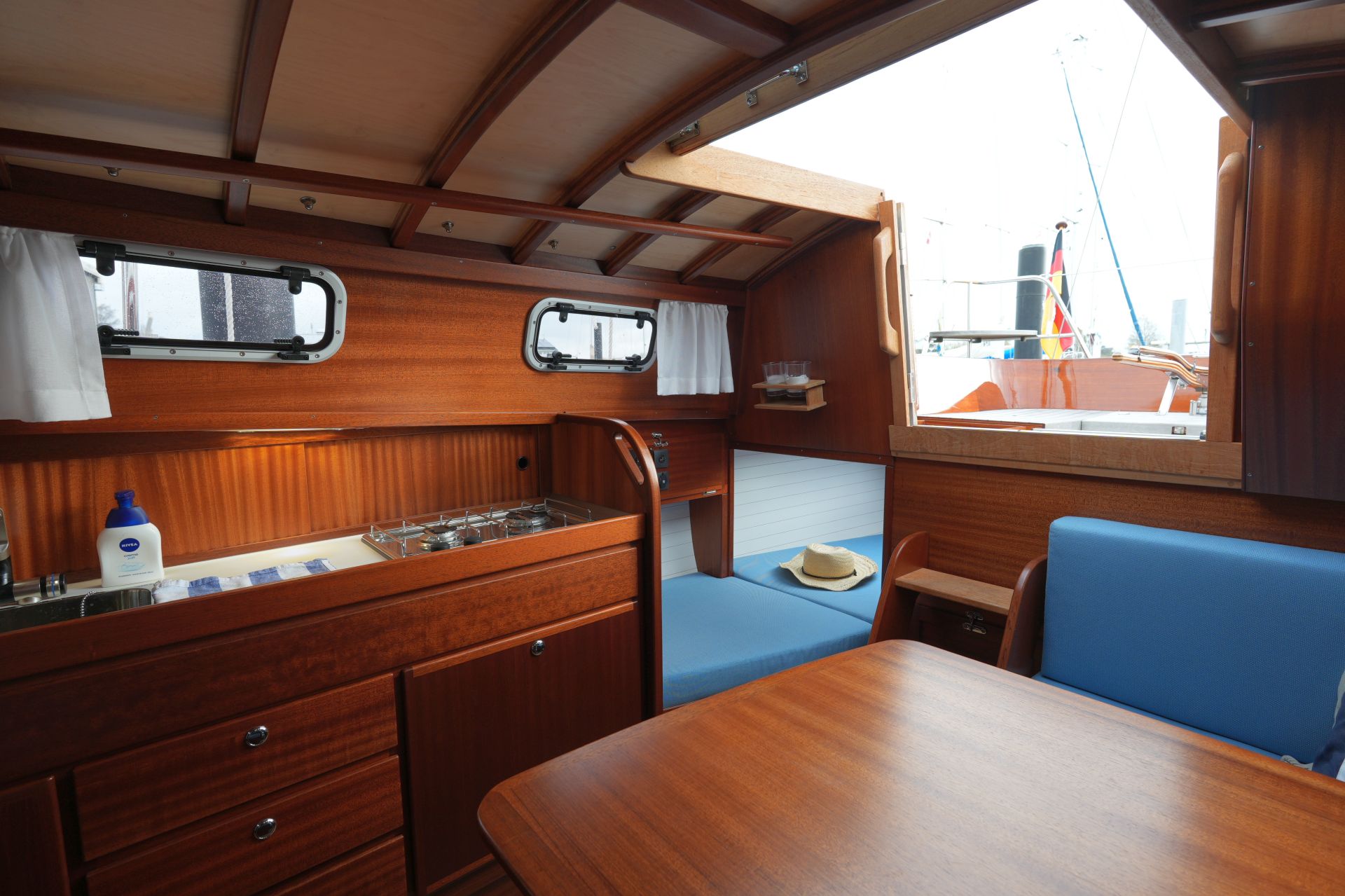 • Abnehmbarer Teak Cockpittisch (in Backskiste gestaut)