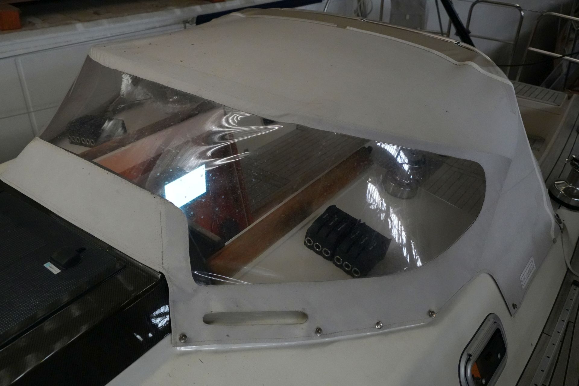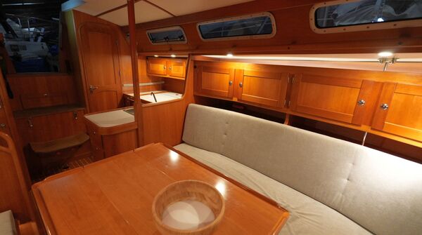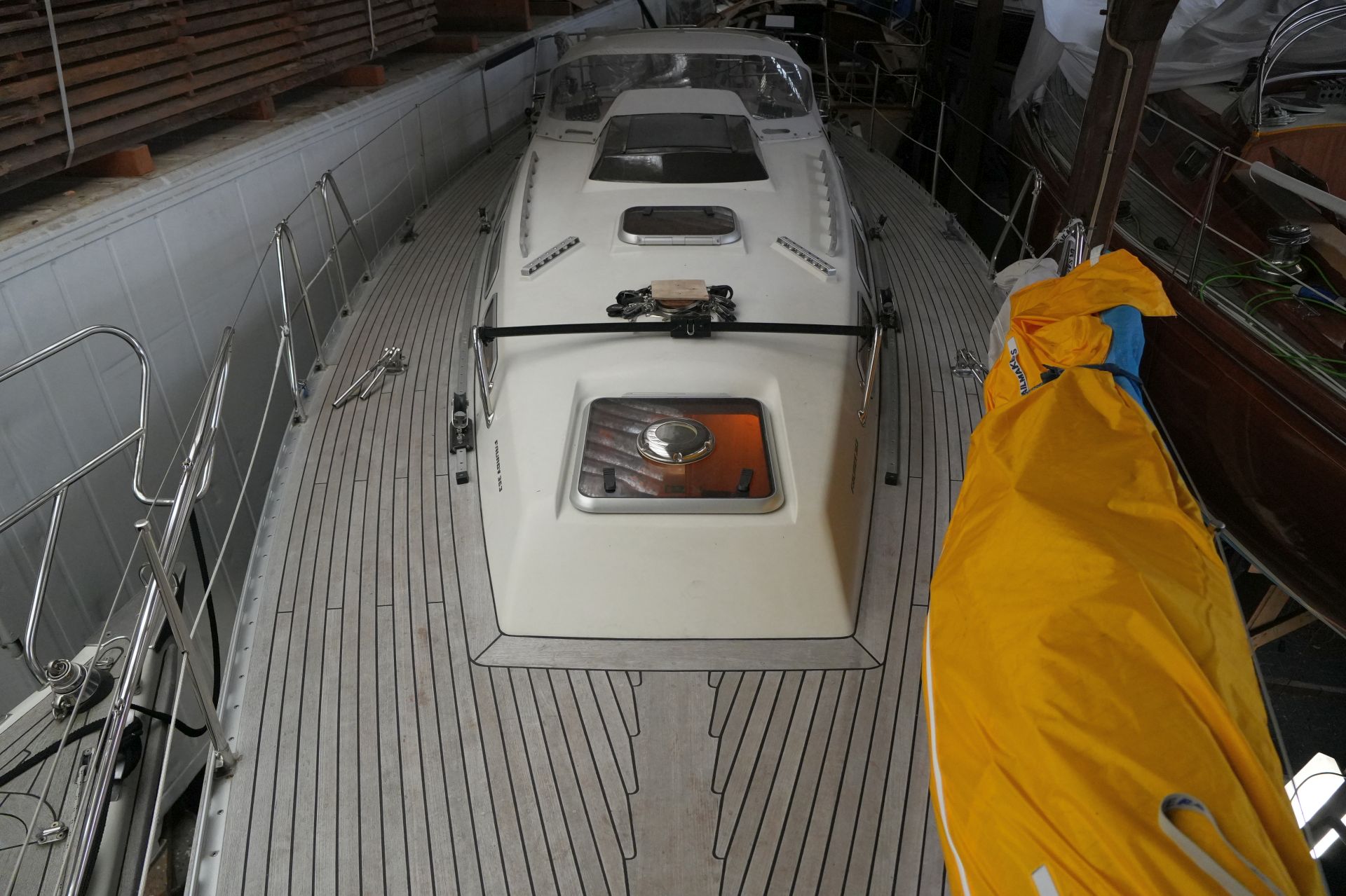 Bei dieser Faurby 363 de Luxe handelt es sich um ein individuelles Einzelstück: Abweichend von der Standardspezifikation hat die Werft einen T-förmigen, elektro-hydraulischen Hubkiel (Tiefgang: ca. 1,25 - 1,85 m) mit Stahlfinne und Bleibombe verbaut. Kielkasten und Powerpack sind praktisch unsichtbar unter dem Salontisch und dem vorderen Salonsitz untergebracht, so daß die Mechanik das Interieur in keiner Weise beeinträchtigt. Auch das lange Spatenruder ist zweigeteilt und kann manuell aufgeholt werden. Darüber hinaus ist die Yacht mit einem Kohlefasermast (neu 2017) mit Kohlefaser Hayrack-Baum und Stehendem Gut in Rod geriggt. Umfangreiche Spezifikation mit Teakdeck, junger, hochwertiger Segelgarderobe, Lithium-Servicebatterie, ORCA-Navigationselektronik, elektrischer Ankerwinde mit Edelstahl Ankergeschirr, Inverter usw. Die Faurby 363 steht jedes Jahr im Hallen-Winterlager und wird laufend gepflegt und technisch gewartet.