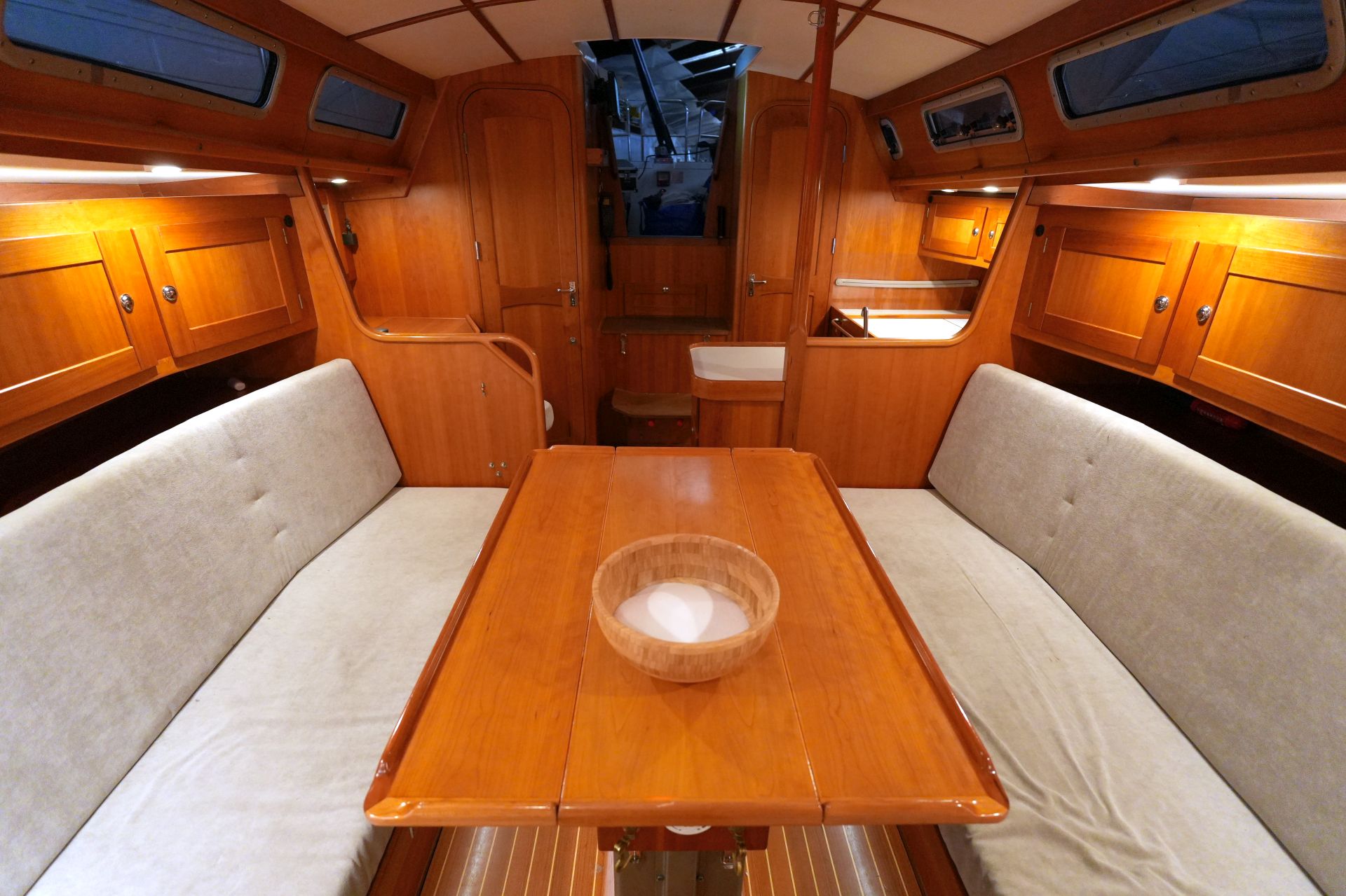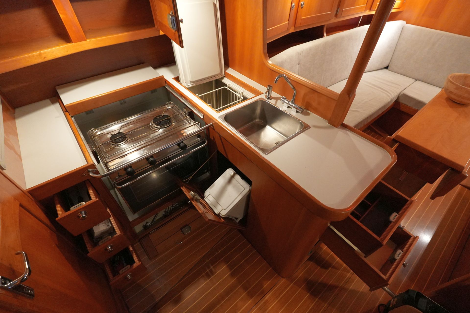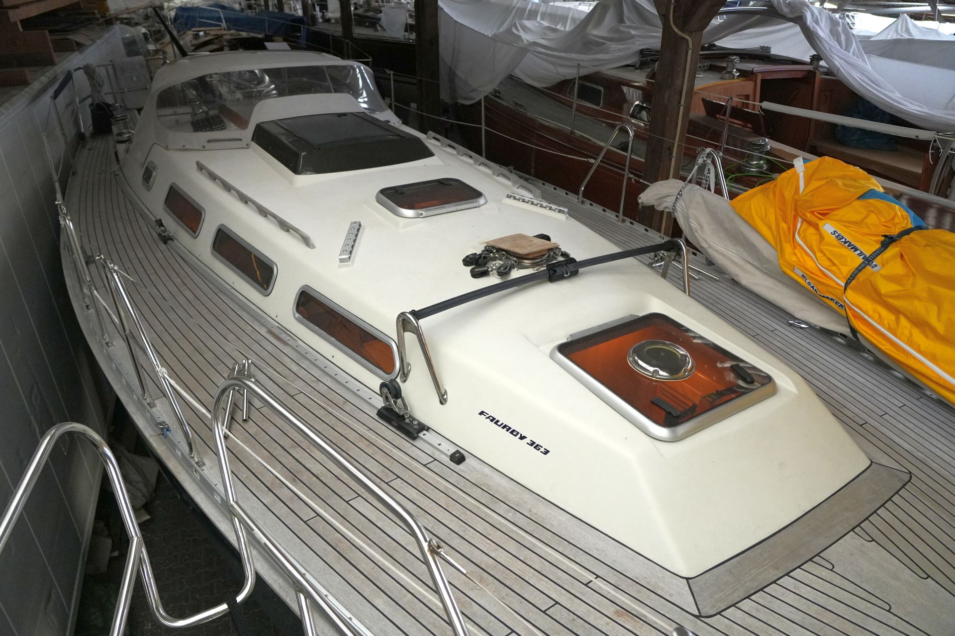 Performance-Cruiser aus dem Jahr 2004Eleganter und schneller Performance-Cruiser von der dänischen Qualitäts-Werft Faurby Yachts ApS. Zeitloses, nordisch-klassisches Design mit niedrigem Freibord, schmalem Rumpf und flachem Aufbau. Das leistungsfähige Rigg, ihre modernen Anhänge und der schlanke Rumpf verleihen der Faurby 363 de Luxe sportliche Segeleigenschaften ohne die Yacht zickig zu machen. Sie bleibt trotz ihres hohen Geschwindigkeitspotentials ein gutmütiger, einfach von einer kleinen Crew zu segelnder Cruiser. Stabile und verwindungssteife Bauweise mit einem galvanisierten Stahlrahmen als Strongback zur Aufnahme der Kräfte von Rigg und Kiel. Traditioneller, skandinavischer Ausbau in Kirsche mit reichlich Massivholz in Rahmen und Leisten und vielen liebevoll ausgeführten Details.