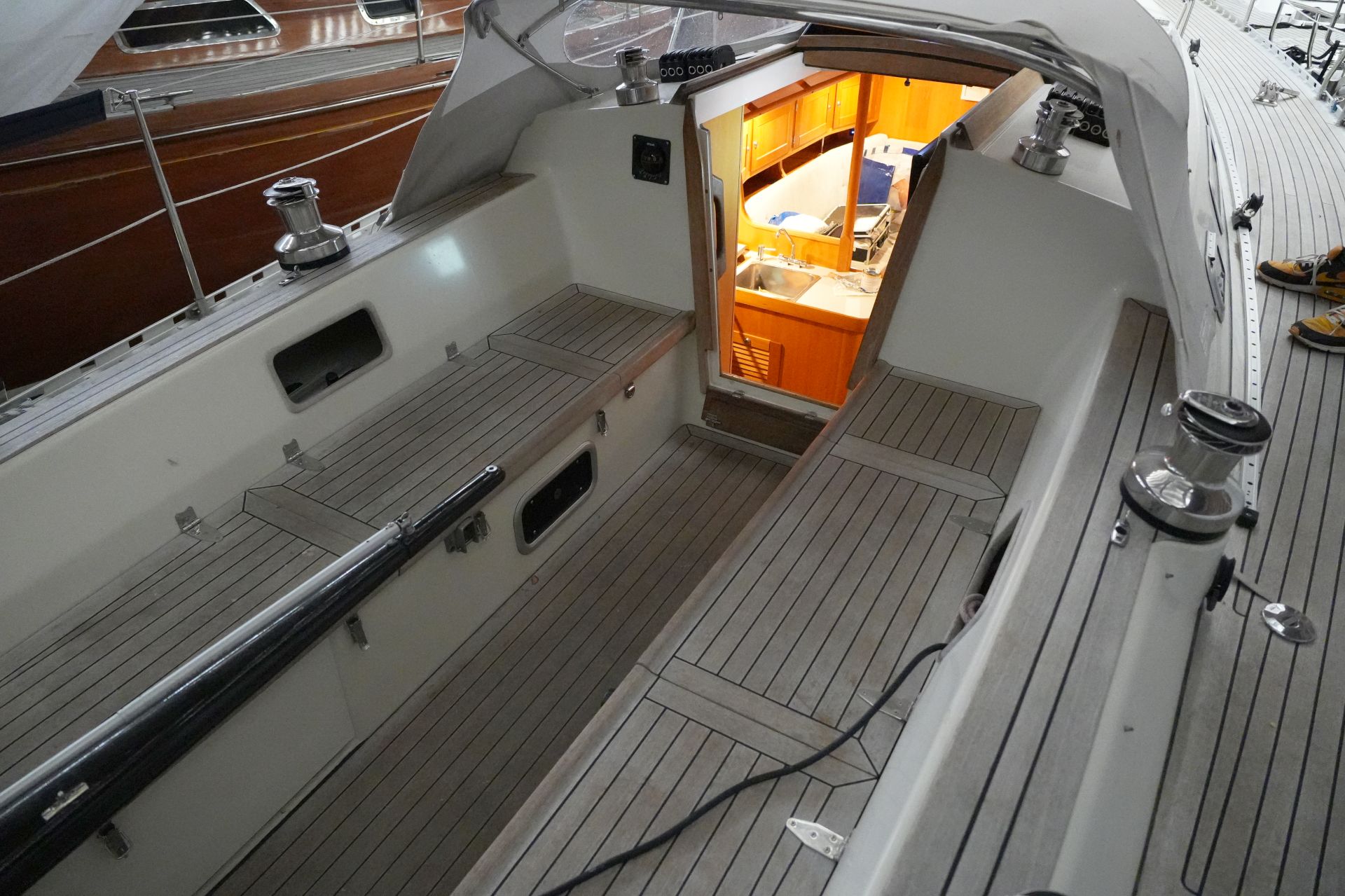- Teakdeck auf Seitendecks, Vorschiff und im Cockpit