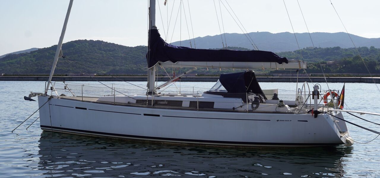 Performance-Cruiser aus dem Jahr 2007Schneller, eleganter Performance-Cruiser von Cantiere del Pardo aus Italien. Die Grand Soleil 40 von Botin & Carkeek Yachtdesign zeichnet sich durch ihr modernes, elegantes und schnörkelloses Design aus. Das aufgeräumte Deck, der steile Steven und ein flacher, kantiger Aufbau machen die Yacht zum Hingucker. Der hohe 3 Salings-Mast, tiefe und effektive Anhänge und die moderne Rumpfform sorgen für reichlich Performance und Segelspaß. Dabei ist die Grand Soleil 40 nicht nur eine schnelle, sondern auch eine steife und sicher zu segelnde Yacht. Sehr solide und verwindungsfreie Bauweise mit Strongback aus galvanisiertem Stahl zur Aufnahme der Lasten von Kiel, Mastfuß und Wanten.