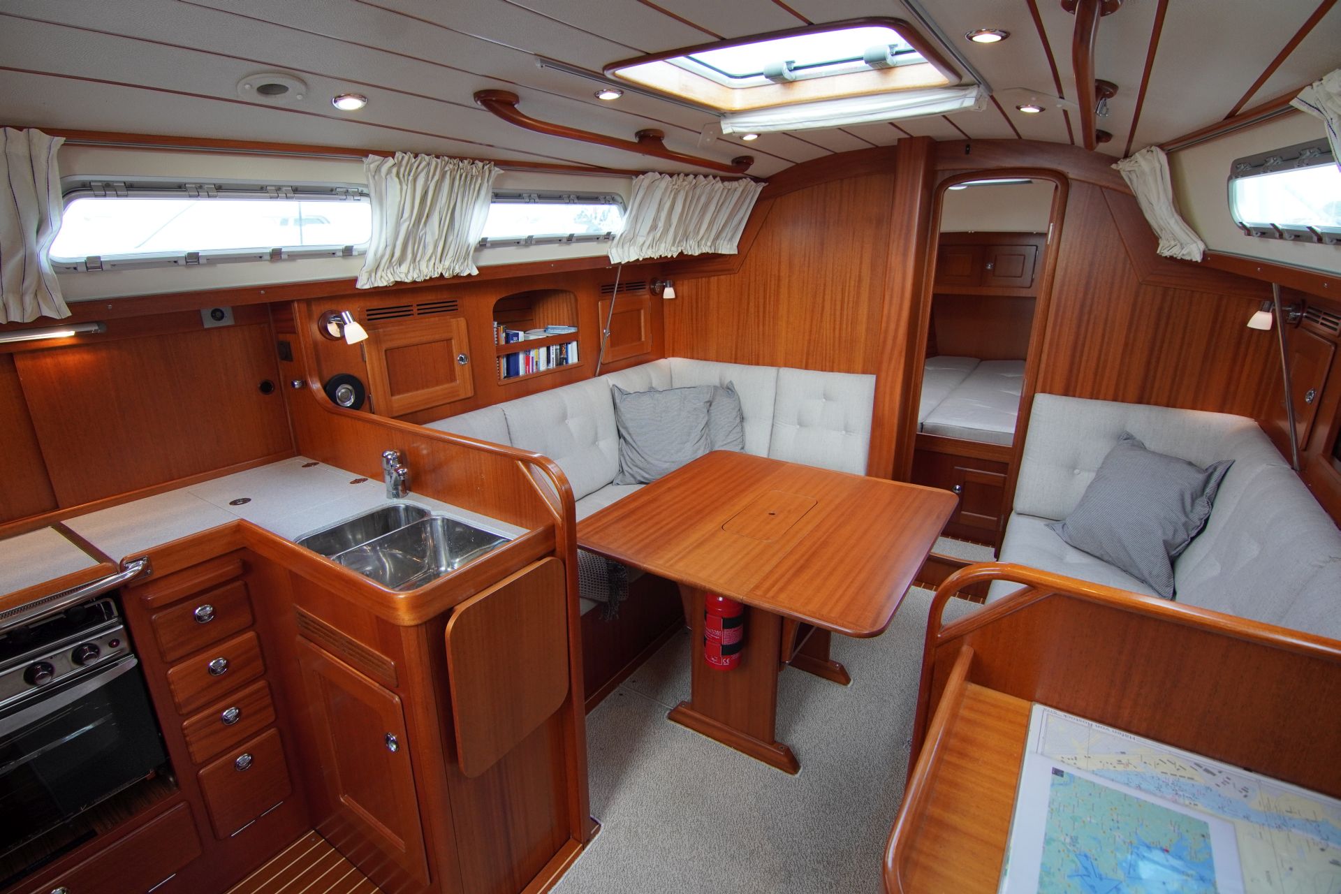 Centercockpityacht aus dem Jahr 2009Solide, seegängige Fahrtenyacht von der Schwedischen Qualitätswerft Hallberg-Rassy auf der Bootsbauinsel Orust. Die guten und agilen Segeleigenschaften bei gutmütigem Seeverhalten machen die Hallberg-Rassy 342 auch zum perfekten Einsteigerschiff. Das tiefe Cockpit mit fester Windschutzscheibe und hohem Süllrand bietet guten Schutz und breite, unverbaute Seitendecks ermöglichen eine sichere Bewegung auch bei rauen Bedingungen. Reichlich Stauraum überall im Schiff in Schränken, Schubladen und Staufächern. Für ihre handliche Größe bietet die Hallberg-Rassy 342 überraschend viel Lebensraum und Komfort für eine vierköpfige Crew. Der handwerkliche Standard des Bootsbaus bei der Traditionswerft Hallberg-Rassy auf der Insel Orust in den schwedischen Westschären setzt Maßstäbe: Die GFK-Verarbeitung, das Finish im Interieur und die Qualität der technischen Installationen sind über jeden Zweifel erhaben.