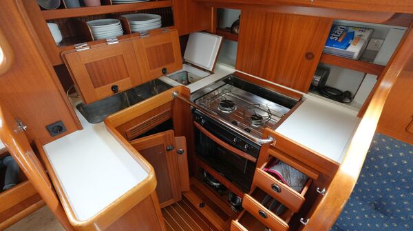 • U-förmige Pantry an Backbord achtern