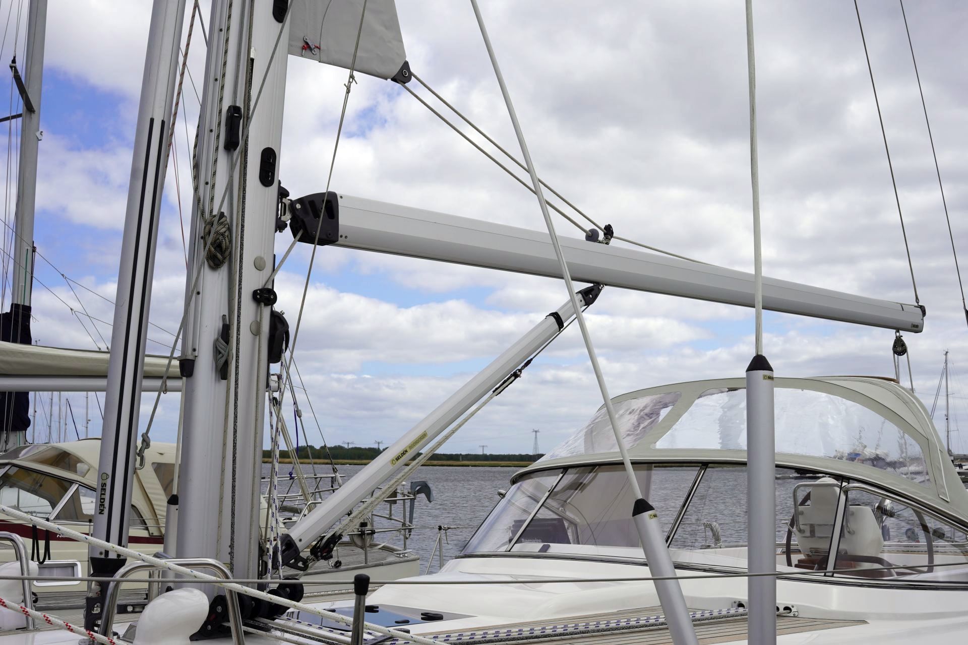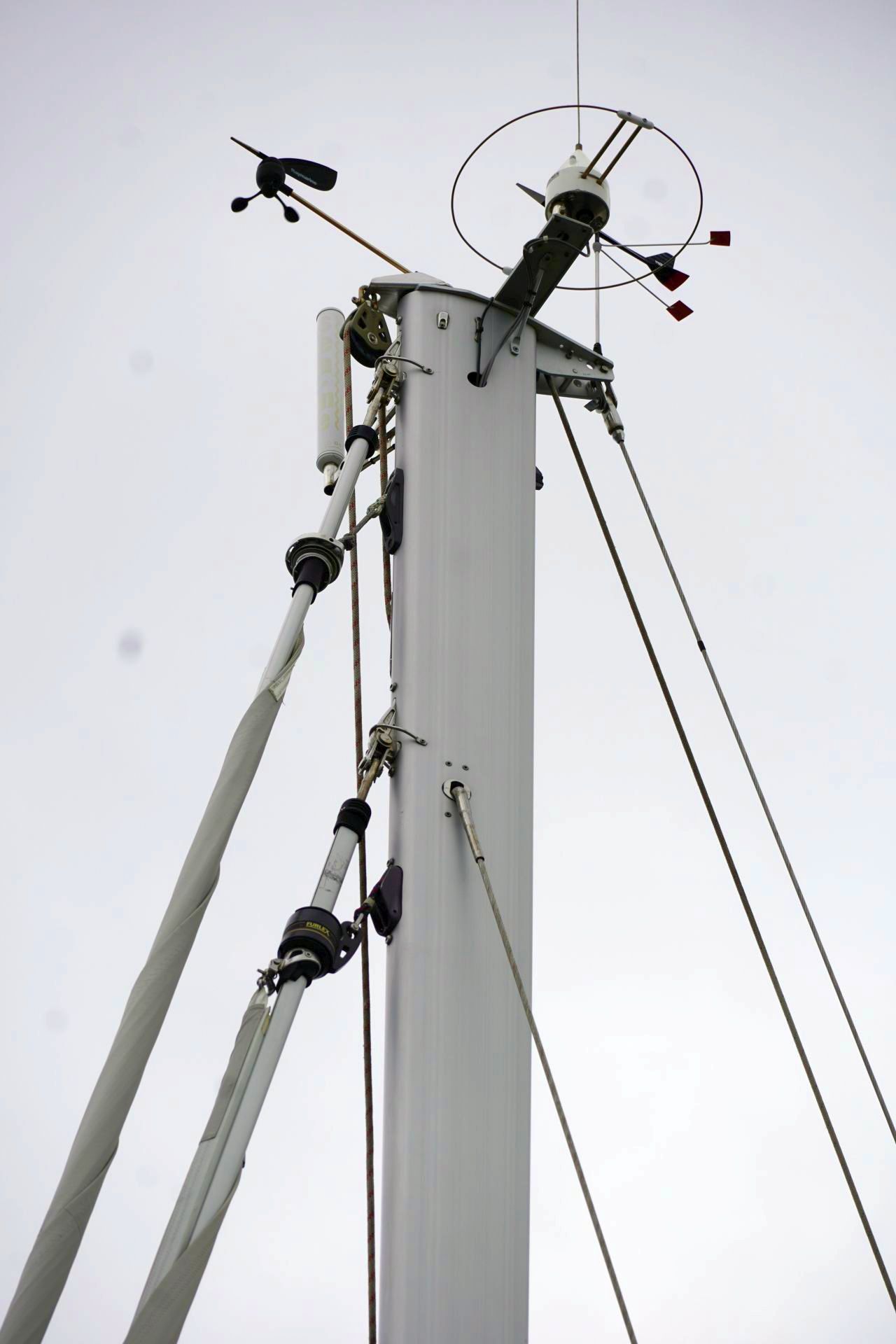- An Deck stehender, 9/10 getakelte SELDEN Rollmast