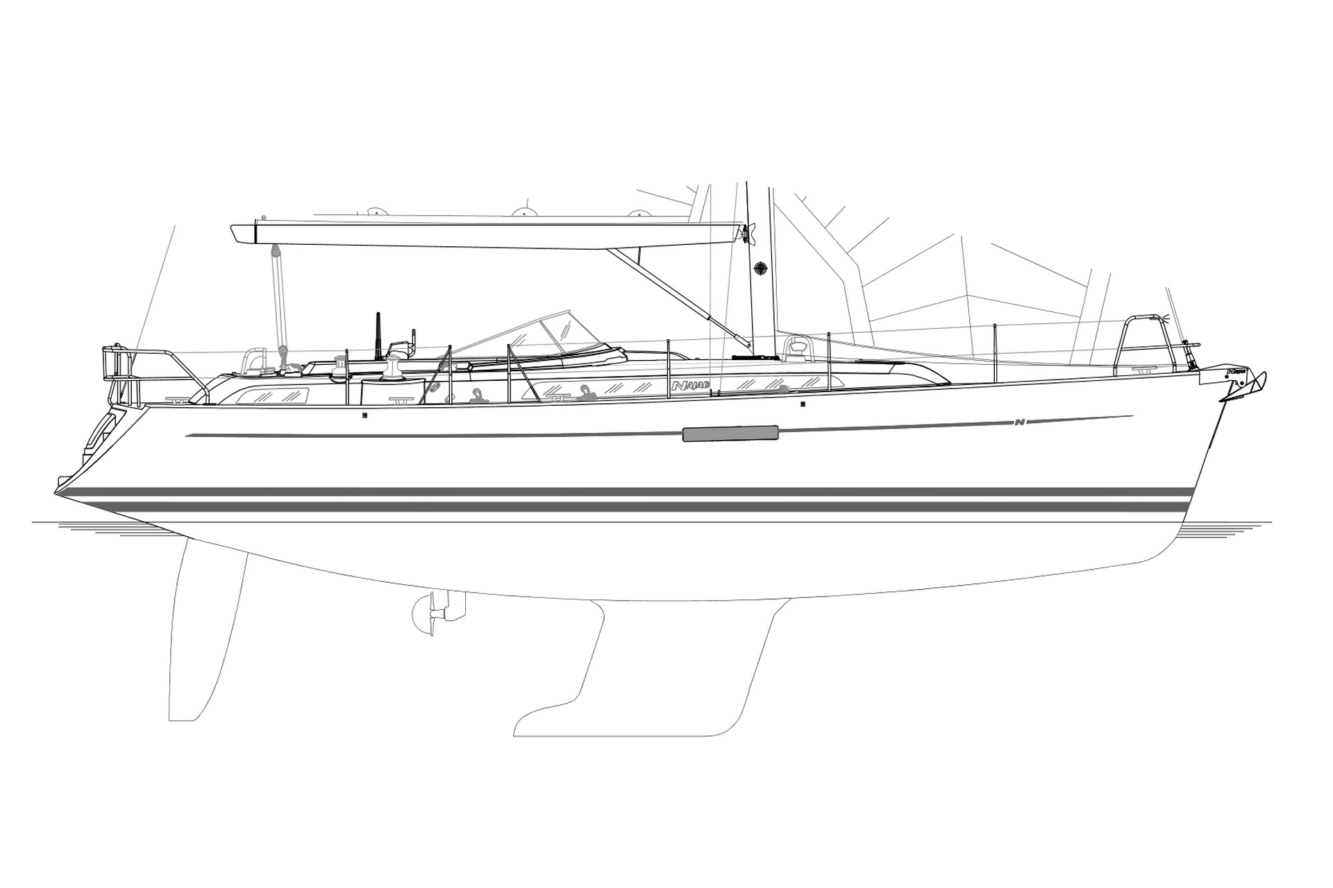 Centercockpityacht aus dem Jahr 2009Seegängiger, exklusiver und schneller Centercockpit-Cruiser von Najadvarvet AB. Die NAJAD 410 kombiniert exklusives, aufwendiges Handwerk von der traditionellen Bootsbauinsel Orust in den Westschwedischen Schären mit modernem, elegantem Design von judel/vrolijk & co. Geschütztes Mittelcockpit mit fester Windschutzscheibe. Breite Seitendecks mit erhöhtem Süllrand ermöglichen eine sichere Bewegung an Deck. Einhand-taugliches Cockpitlayout, da alle Fallen, Schoten und Strecker auf die beiden Sekundärwinschen neben dem Steuerstand geführt sind (keine Aufbauwinschen). Hervorragende Segeleigenschaften dank hohem 3 Salings-Rigg, modernen Rumpflinien und schlanken, effektiven Anhängen. Heller, liebevoll ausgeführter, aufwendiger Ausbau in Mahagoni und weißen Vinyl-bespannten Panelen vom Interieur-Designer Rhoades/Young aus London. 2 Kabinen-Layout mit luxuriöser Eignerkabine über die volle Schiffsbreite im Heck.