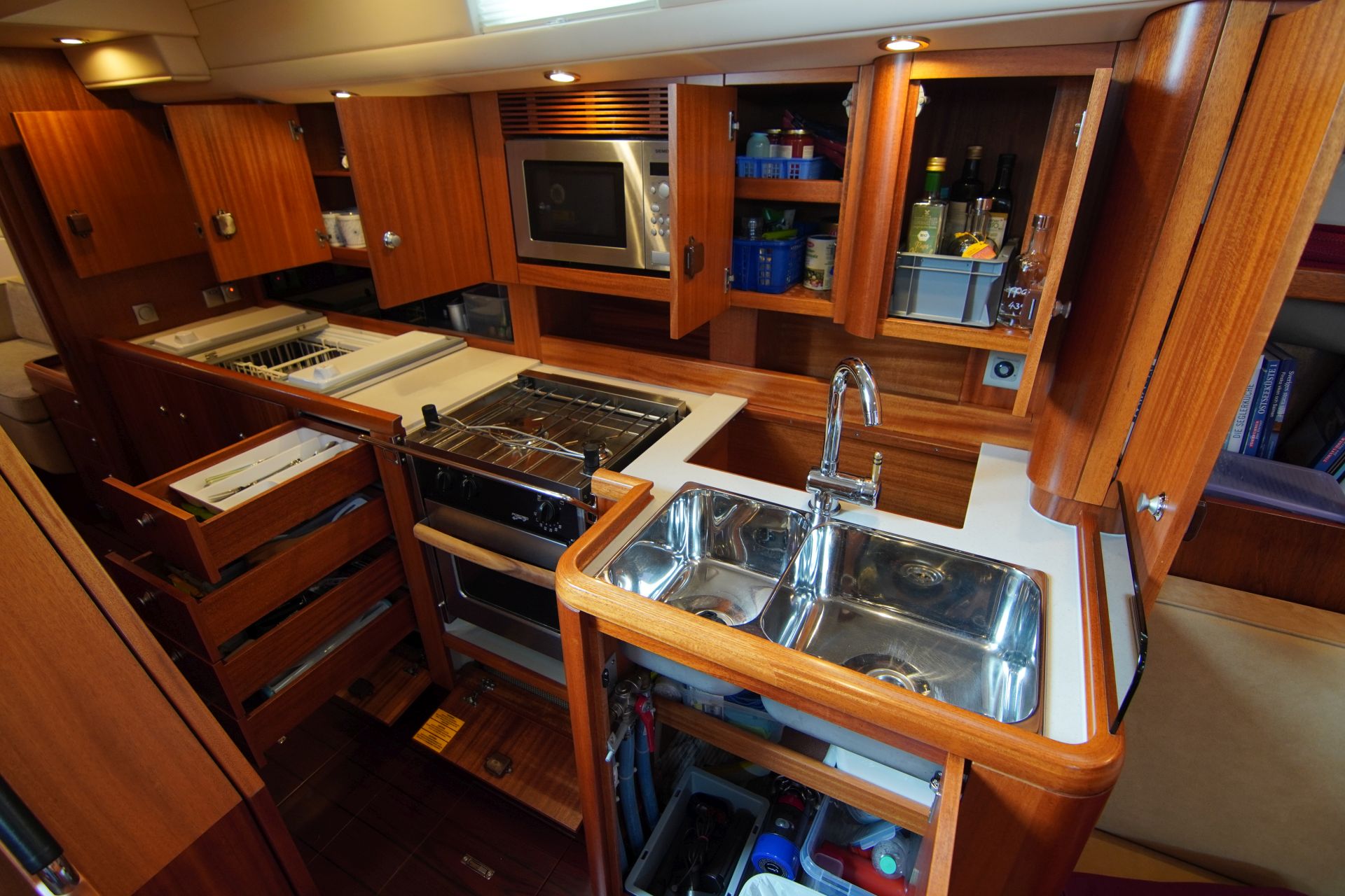 - Längs-Pantry im Durchgang zur Achterkabine an Backbord