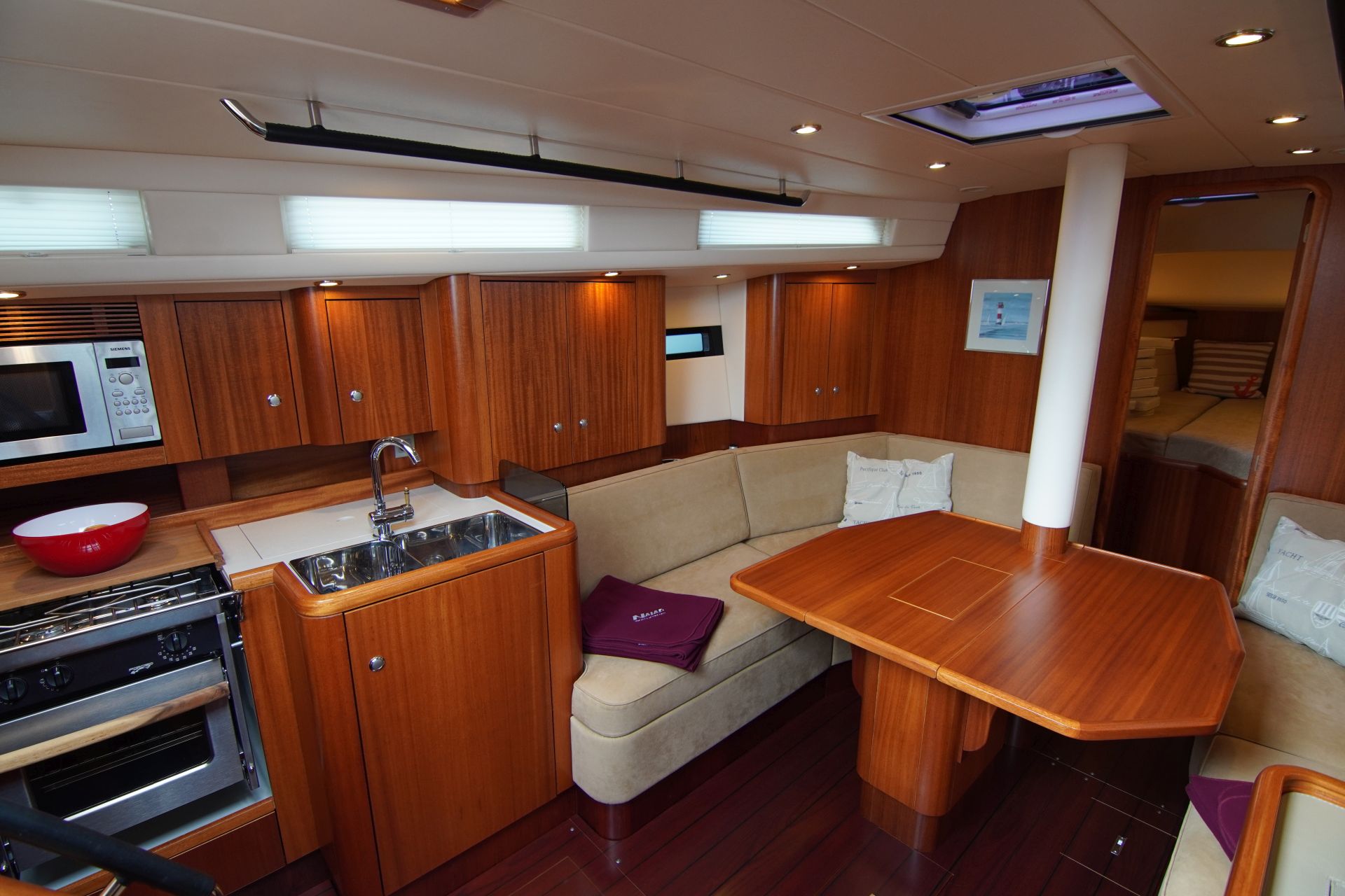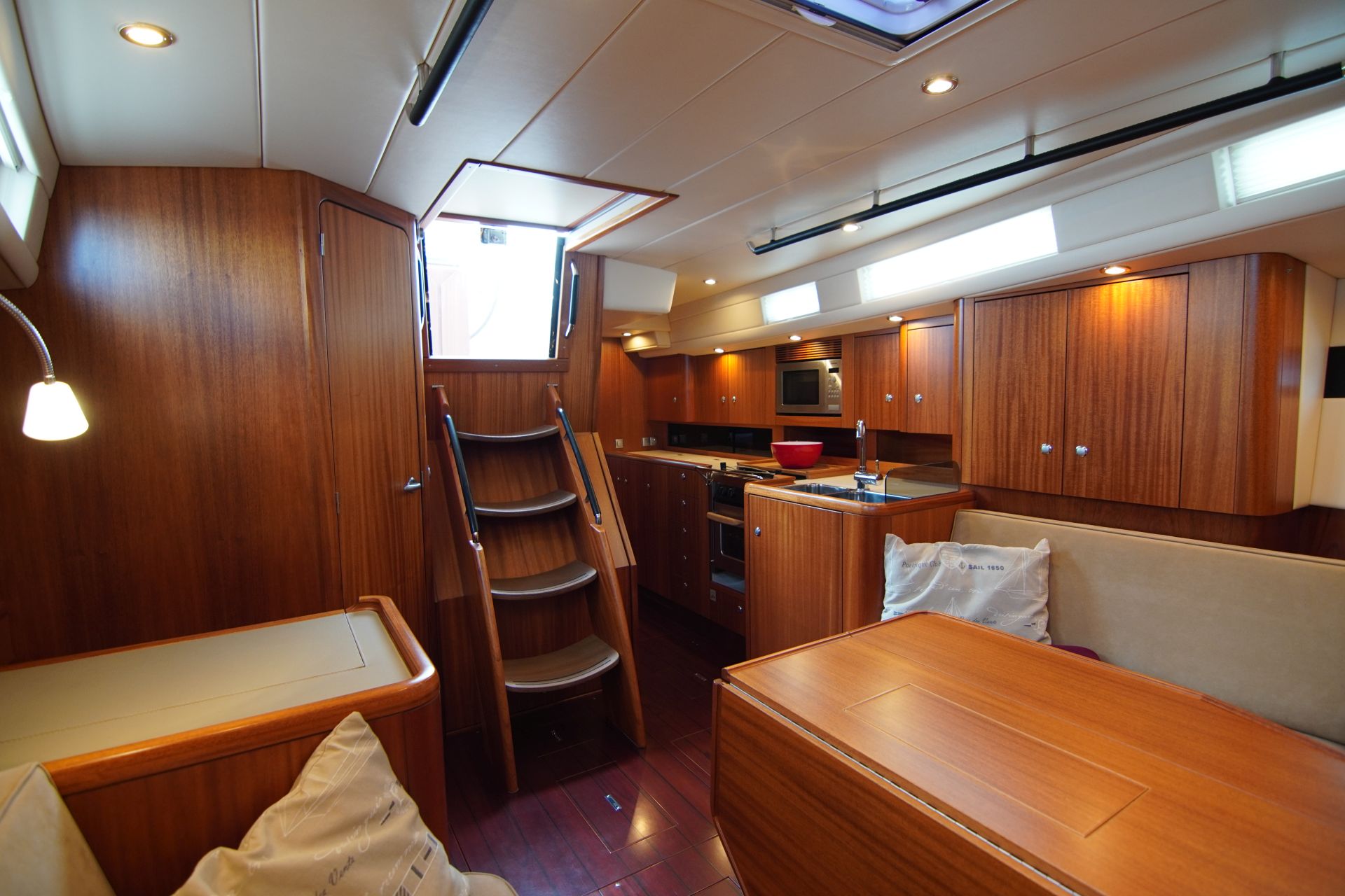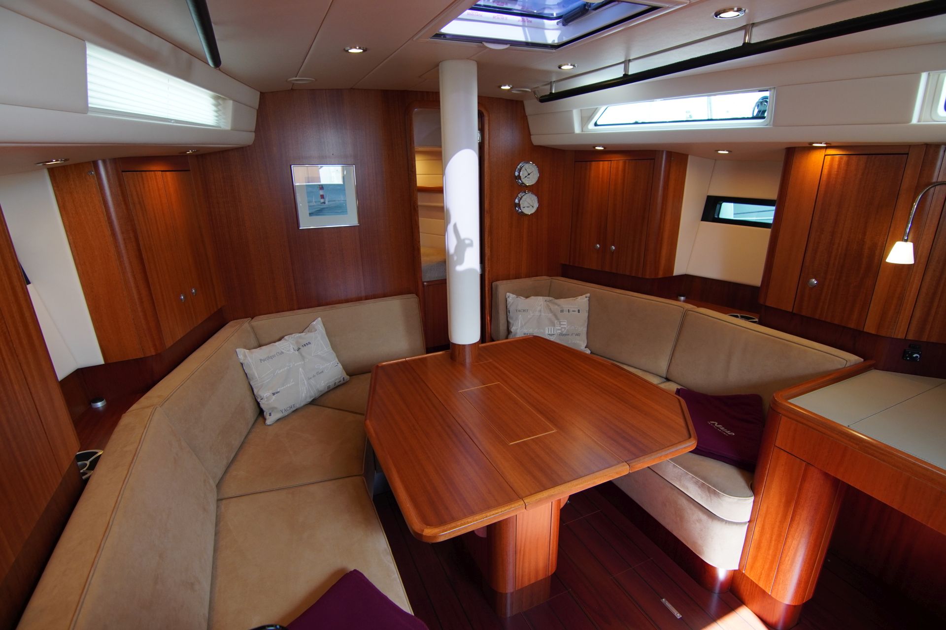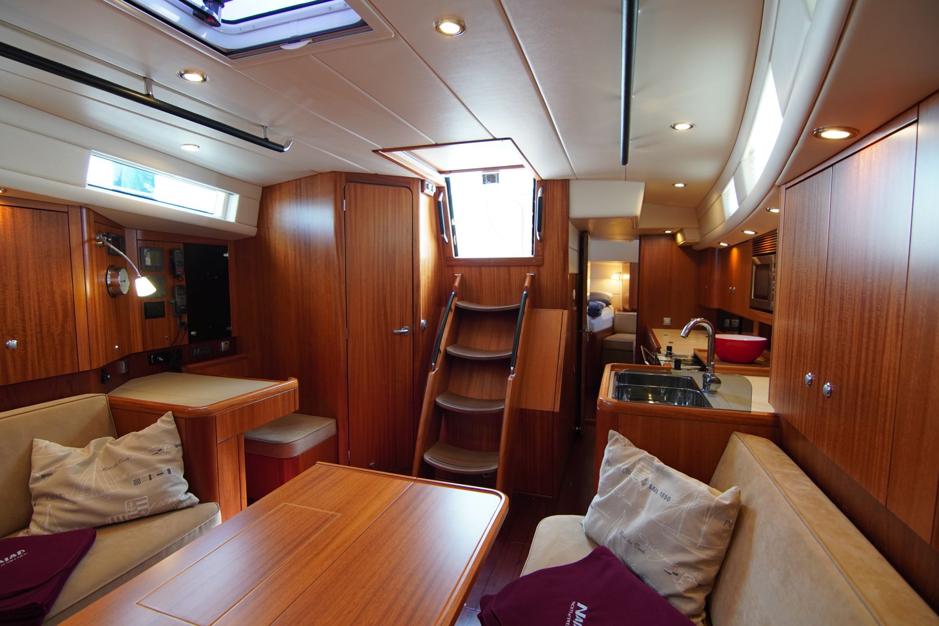 - Hochglanzlackierte Kartentische und Schott am Niedergang (zusätzliches Steckschott in Plexiglas)