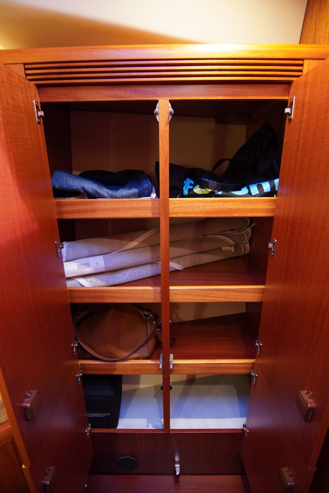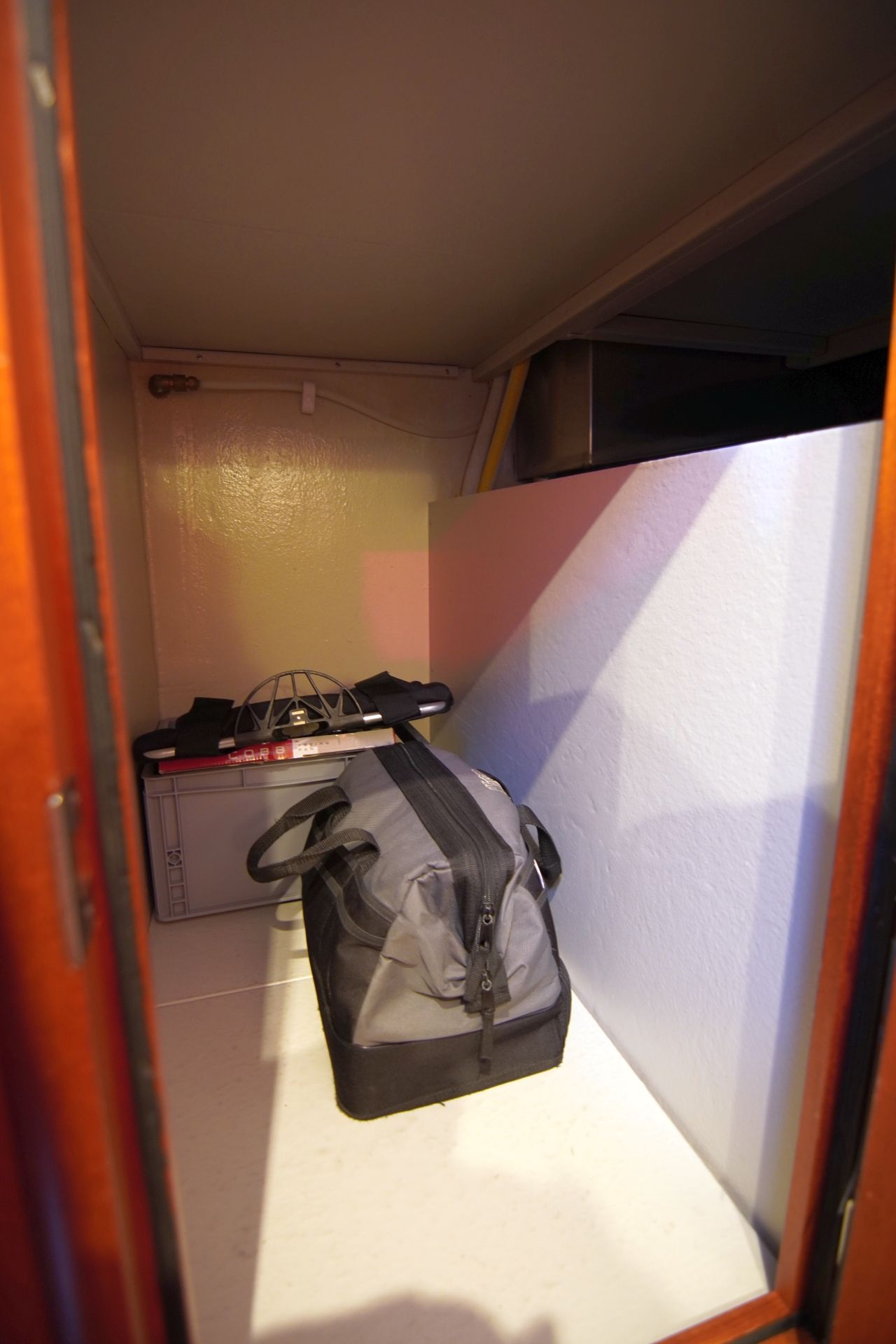 - Heller, exklusiver und liebevoll ausgeführter Ausbau in ungebeiztem afrikanischen Mahagoni, Jatoba und weißen, Vinyl-bespannten Seiten und Deckenpanelen