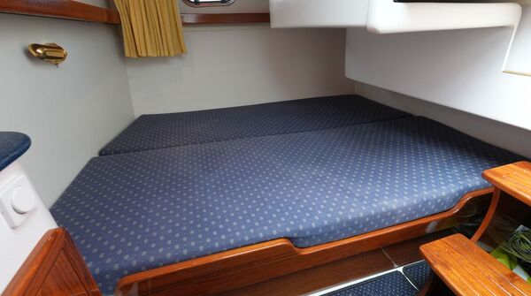 • Achterkabine mit separatem Zugang vom Cockpit aus mit Doppelkoje, zwei Rumpffenstern, Waschbecken