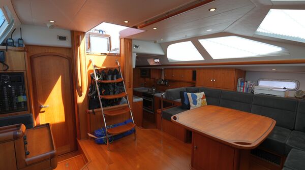 Decksalonyacht aus dem Jahr 2011Die Britische Werft Oyster Marine baut seit über 50 Jahren exklusive, zuverlässige "Go anywhere"-Cruiser für weltweite Fahrt und man trifft sie auf den entlegensten Revieren der Welt. Blauwasser-Segeln mit Stil und Luxus ist das bewährte Konzept, das die Werft in Zusammenarbeit mit Hausdesigner Rob Humphreys entwickelt hat. Ein besonders vielseitiges Modell ist die Oyster 575. Groß genug für Weltumsegelungen mit allem Komfort oder ausgedehnte Aufenthalte an Bord und trotzdem so handlich, daß sie privaten Eignern und ihren Familien ein problemloses Handling ohne die Hilfe einer professionellen Crew ermöglicht. 66 Einheiten baute die Werft bis 2018, was die Oyster 575 zu einem der erfolgreichsten Typen von Oyster Marine macht. Ihr ausgereiftes Deckslayout, das clever aufgeteilte Cockpit mit zwei Steuerständen und dem davor liegenden Gästebereich, große Tankvolumina und Stauräume sowie der hohe Standard des Bootsbaus und der technischen Installationen machen die Oyster 575 zu einem beliebten Fahrzeug für die Oyster World Rally, einer eigens von der Werft für Oyster-Eigner organisierten Geschwaderfahrt rund um den Globus.