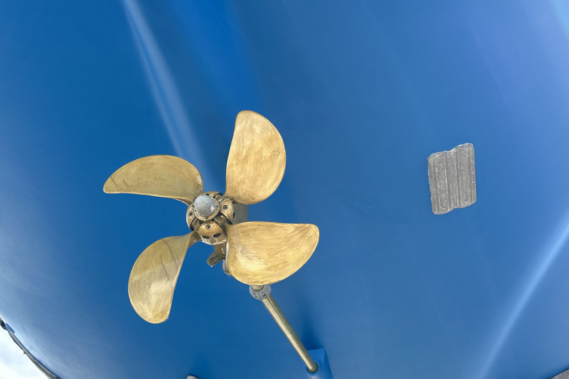 - Wellenanlage mit flexibler Kupplung AQUADRIVE, 4-flügeligem Faltpropeller Brunton Varifold und Leinenschneider auf der Propellerwelle