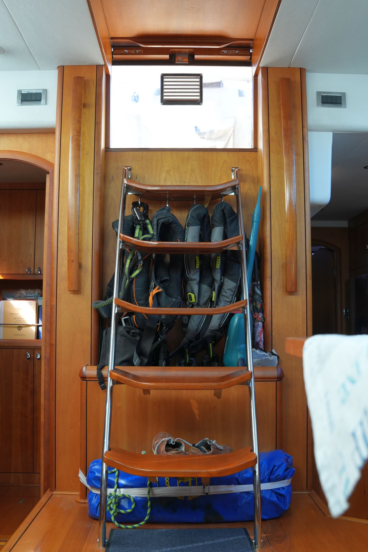- Relingstore mit Seiteneinstiegs-Leitern an Steuerbord und Backbord