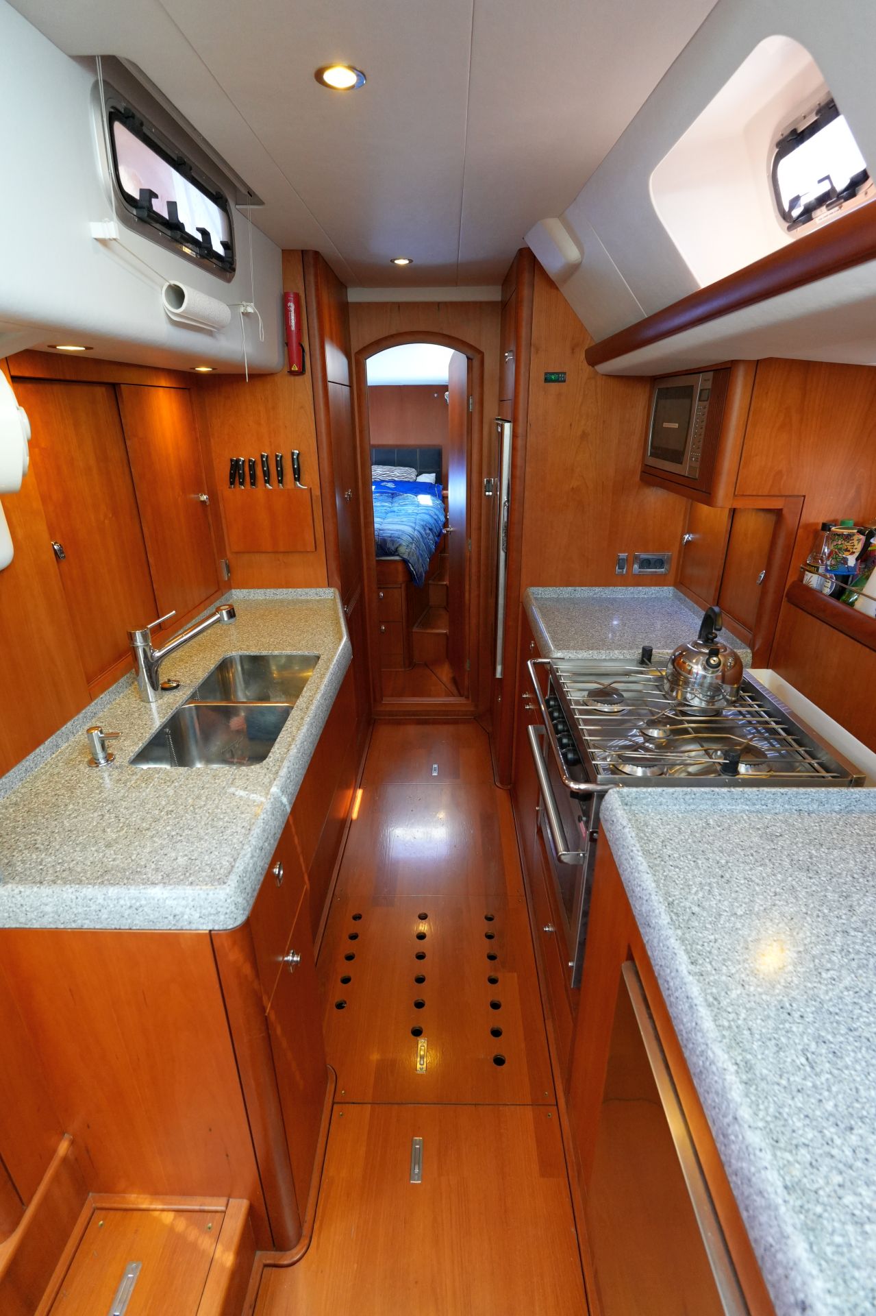 - Längspantry auf beiden Seiten im Durchgang zur Achterkabine