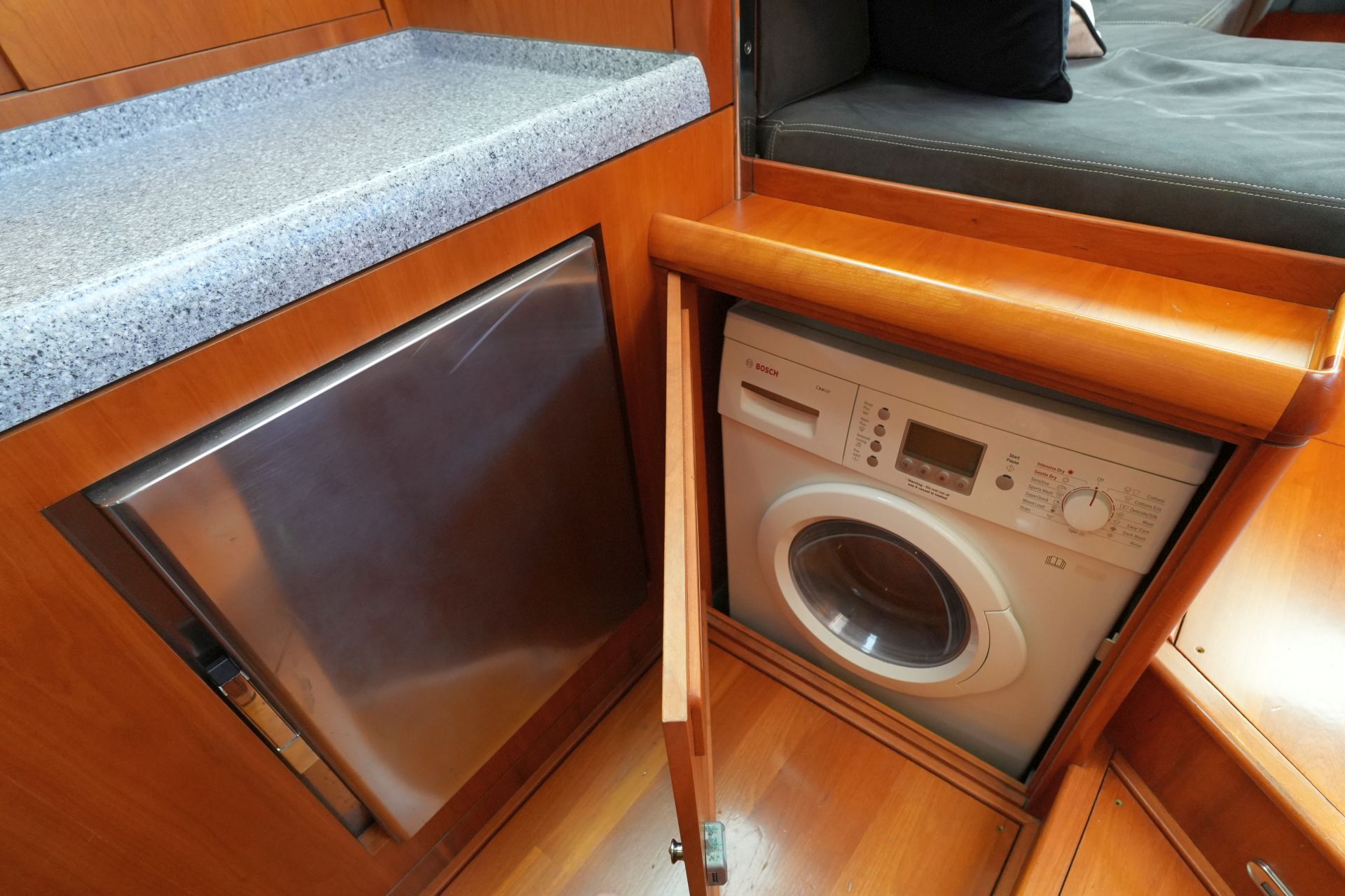 - Warmwasser-Boiler 73 l (heizt über Wärmetauscher auf Maschine, 230 V Heizelement oder Dieselheizung)