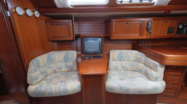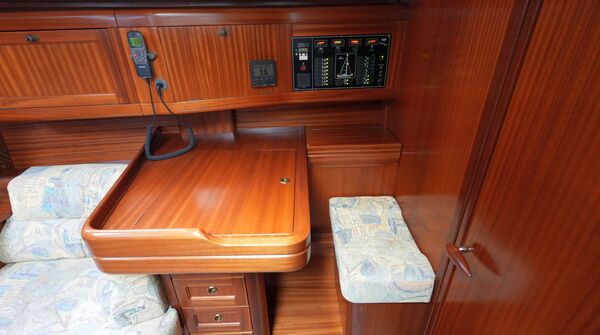 - Großer Kartentisch mit Navigatorsitz in Fahrtrichtung eingebaut an Steuerbord achtern