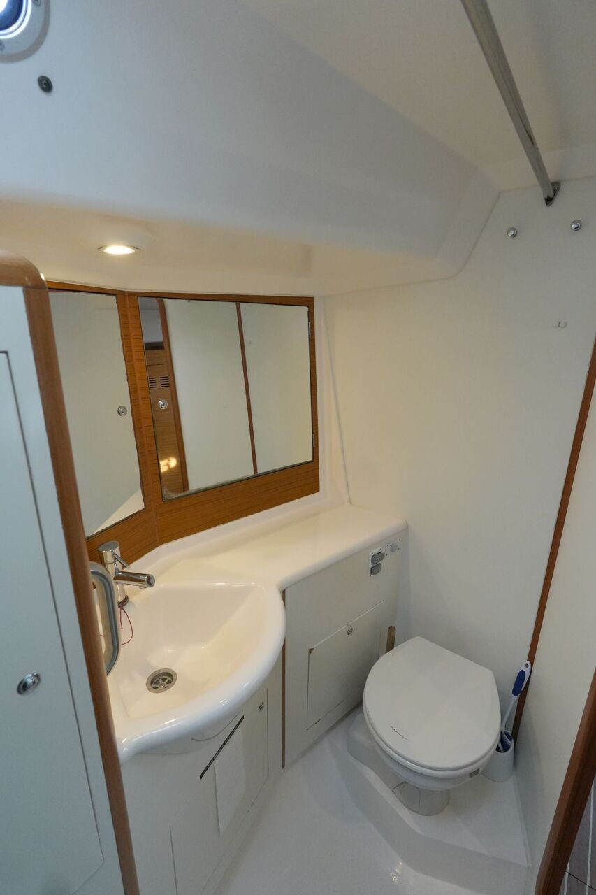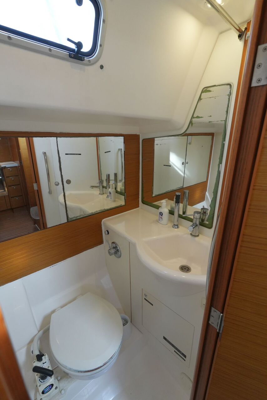 - Nasszelle an Steuerbord achtern mit Waschbecken, Marine-WC und Dusche