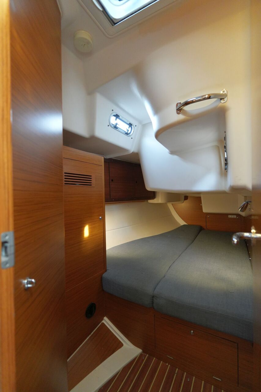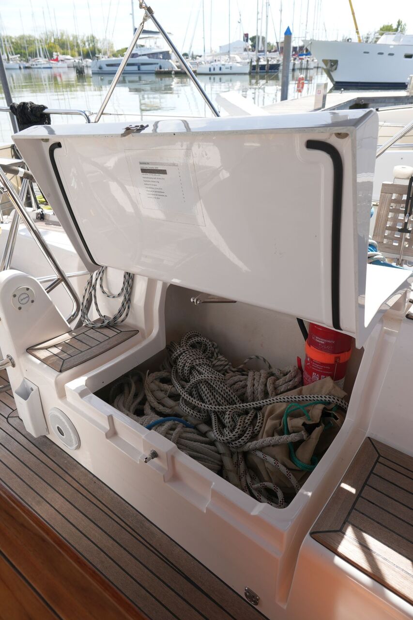 Bei dieser XC-45 MK II handelt es sich um die umfangreich ausgerüstete Fahrtenyacht eines Vereins, der seinen Mitgliedern Hochsee-Touren mit Skipper anbietet. Das Schiff wurde speziell für diesen Zweck spezifiziert und hat ein Custom-Layout für die Vorschiffskabine mit zwei Einzelkojen und reichlich Stauraum in zusätzlichen großen Schränken. Mit Kutterstag, einem Dieselgenerator, einer großen 24 V/420 Ah Lithium-Servicebatteriebank sowie umfangreicher Navigationselektronik und Sicherheitsausrüstung ist die XC-45 voll hochseetauglich ausgestattet. Der Rollbaum, eine elektrische Fallwinsch und das ausfahrbare Bugstrahlruder ermöglichen es, die Yacht auch mit kleiner Crew sicher zu segeln. Da sich die XC-45 im Vereinsvermögen befindet, ist der Fragepreis exkl. Mwst. angegeben.