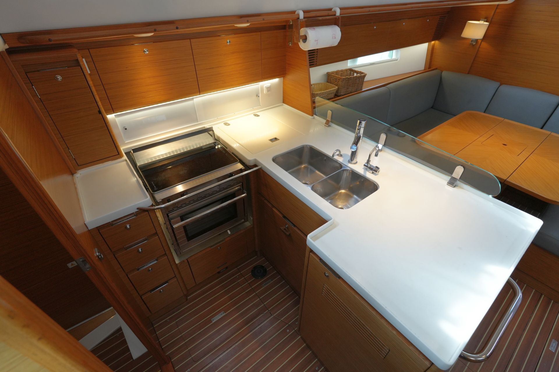 - L-förmige Pantry an Backbord achtern