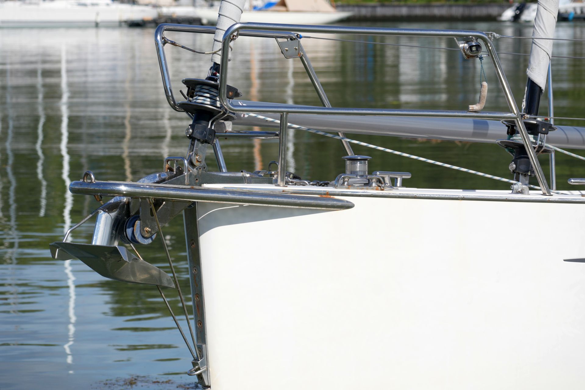 - Große Edelstahl Festmacherklampen vorn und achtern