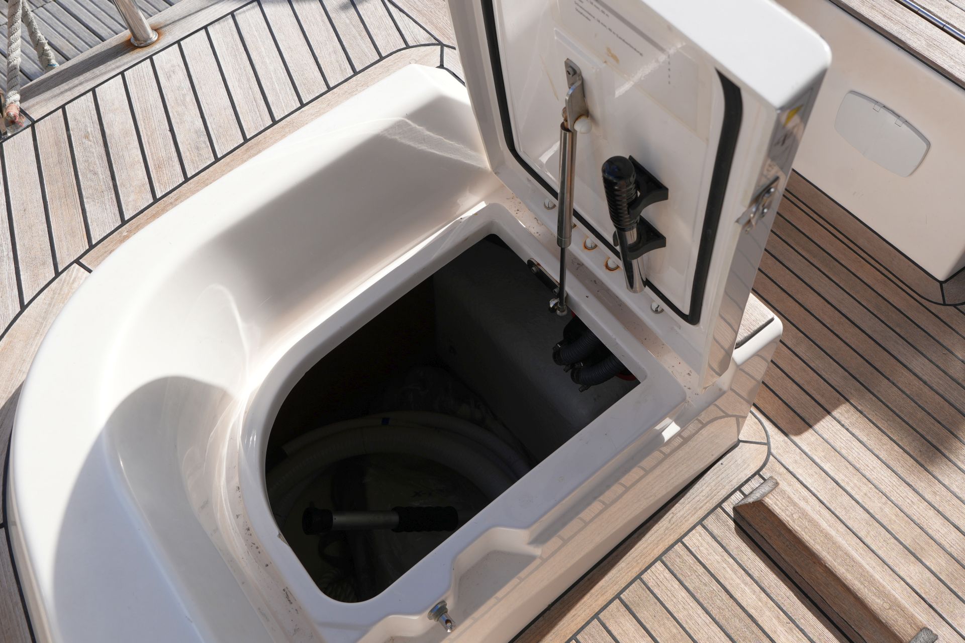 - Rettungsinsel-Staufach hinter Badeplattform im Heck