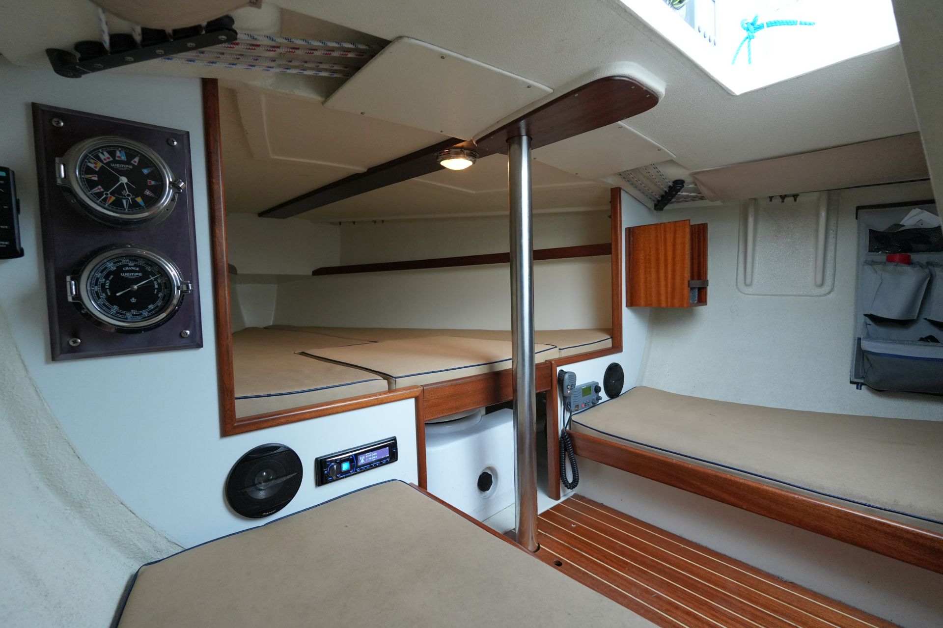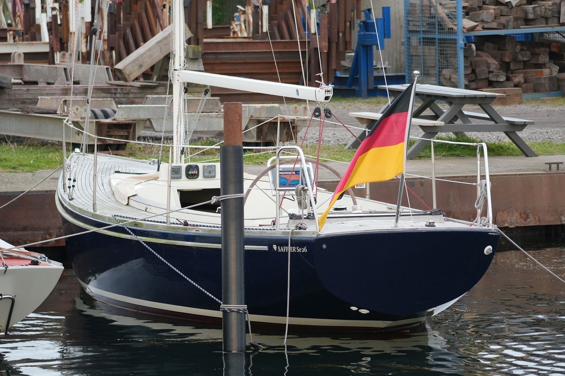 Daysailer aus dem Jahr 2010Ein handlicher, absolut einhand-tauglicher, sportlicher und wunderschöner Daysailer mit klassischen Linien. Das ist die Saffier Saffier SE 26 von Saffier Maritiem aus den Niederlanden. Das Schiff ist auf Einhand-Segeln und einfaches Handling ausgelegt. Ein ergonomisches Deckslayout und die gut beherrschbare Größe garantieren entspanntes, sicheres Segeln ohne Crew. Die Selbstwendefock und die Führung aller Strecker, Schoten und Fallen auf die beiden Winschpodeste direkt vor dem Steuerstand ermöglichen es, alle Manöver ohne Crew vom Steuerstand aus zu fahren. Trotzdem ist im geräumigen Cockpit Platz für Gäste und ein komfortables, hohes Süll sowie die Sprayhood bieten Schutz bei ungemütlichen Bedingungen. Der für diese Bootsklasse ungewöhnliche YANMAR 14 PS Einbaudiesel ist zuverlässig und vereinfacht Hafenmanöver.