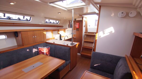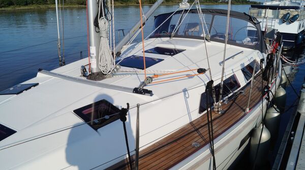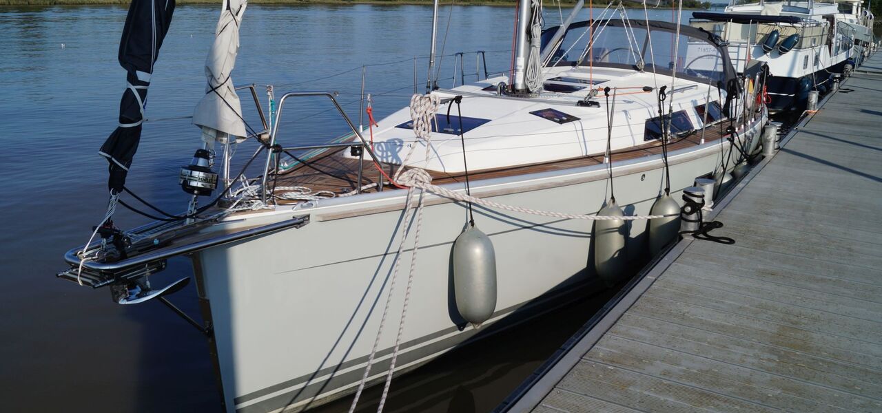 Junges, gepflegtes und komplett ausgerüstetes Eignerschiff aus erster Hand. Rumpf in hellgrauem Gelcoat, T-förmiger Performance-Kiel (Tiefgang: ca. 1,95 m) und Motor-Upgrade auf YANMAR 40 PS. Umfangreiche Spezifikation inkl. Teakdeck, ausfahrbarem Bugstrahlruder, großem BROOKS & GATEHOUSE Navigationspaket, schwedischem Bugspriet, angehängter Badeplattform, umfangreicher Segelgarderobe usw.