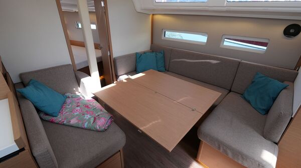 - Der Salontisch kann abgesenkt und zu einer zusätzlichen Doppelkoje umgebaut werden