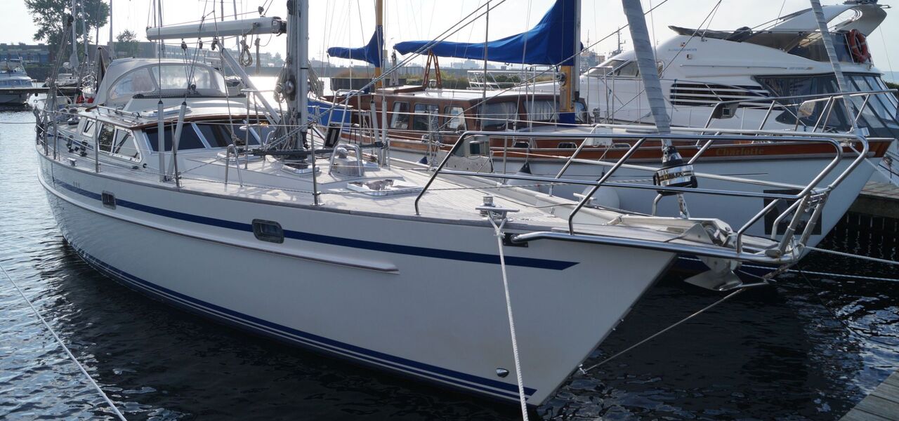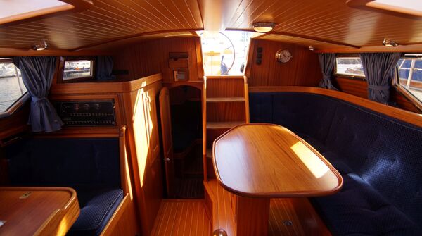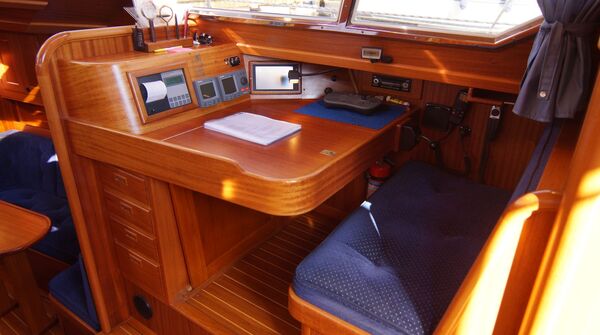 Decksalonyacht aus dem Jahr 2004Stäbiger, seegängiger Decksalon-Cruiser von Regina af Vindö Yachts (vormals Rex Marine AB) auf der Insel Vindö in den Schwedischen Westschären. Solider skandinavischer Bootsbau und exklusives Mahagoni-Interieur mit viel massivem Holz und liebevoll ausgeführten Details. Heller Decksalon mit gehobenem Salonboden. Von der Salon-Sitzgruppe und vom Kartentisch aus blickt man im Sitzen auf den Horizont. Regina 43 im optionalen 3 Kabinen-Layout mit geräumiger Eignerkabine über die gesamte Schiffsbreite im Heck und Unterflurkabine unter dem Decksalon an Backbord. Gepflegtes, sehr gut ausgerüstetes Eignerschiff aus erster Hand. Jeden Winter im Hallen-Lager und laufende technische Wartung und Unterhaltung. Dank elektrischem Rollmast (neu 2012), Selbstwendefock, vier elektrischen Winschen und Bugstrahlruder ist die Yacht einfach und sicher von einer kleinen Crew zu bewegen.