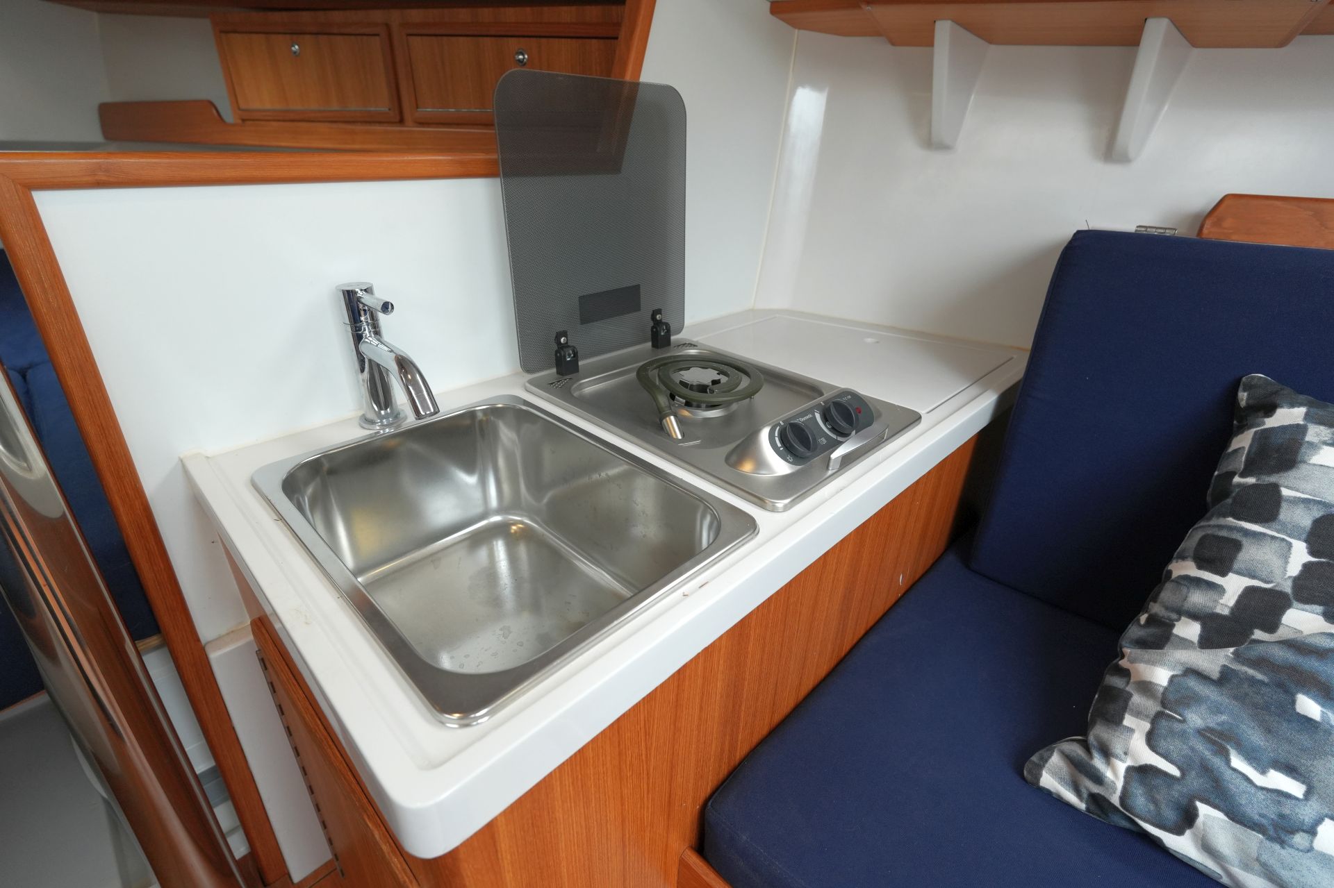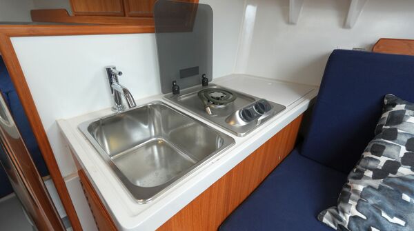 - Pantryblock an Steuerbord mit Waschbecken und Spirituskocher