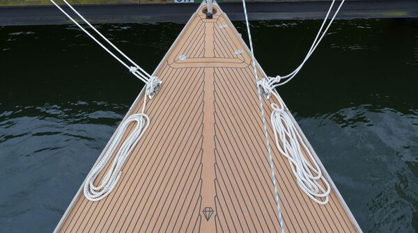 - ESTHEC Kompositdeck auf Seitendecks, Cockpitduchten und Cockpitboden (Farbe: "Honey" mit schwarzen Streifen)
