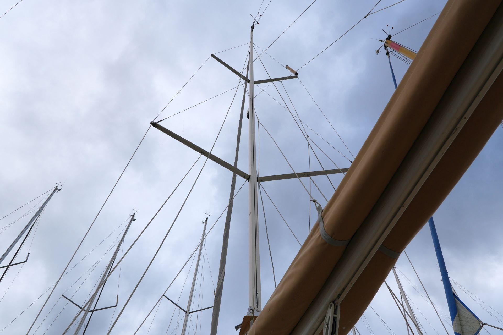 - An Deck stehender, 9/10 getakelter, weiß lackierter SELDEN Mast