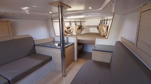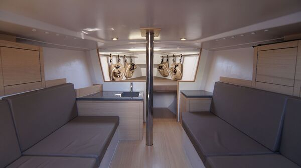 Diese Yacht betont den sportlichen Charakter der Saffier SE 33: Kohlefasermast, fester Kohlefaser Gennakerbaum, exklusive 3Di Segelgarderobe von NORTH-Sails inkl. Gennaker und Code-0 sowie der L-förmige Performance-Bleikiel (Tiefgang: ca. 1,70 m). Auch das notwendige Komfort-Equipment ist an Bord: Elektrische HARKEN Rewind Winschen mit Steuerung beider Winschen von beiden Steuerständen aus, zwei Kühlfächer, Cockpitpolster und Sonnenliegepolster für das Achterdeck sowie eine ausklappbare Badeplattform mit Badeleiter. Junges, wenig genutztes Eignerschiff aus erster Hand mit Rumpf und Deck in "Schwarzgrau" und Zierstreifen in "Graphitgrau".
