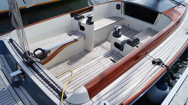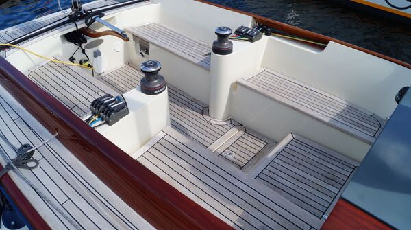 - Teakdeck auf Seitendecks, Badeplattform und im Cockpit